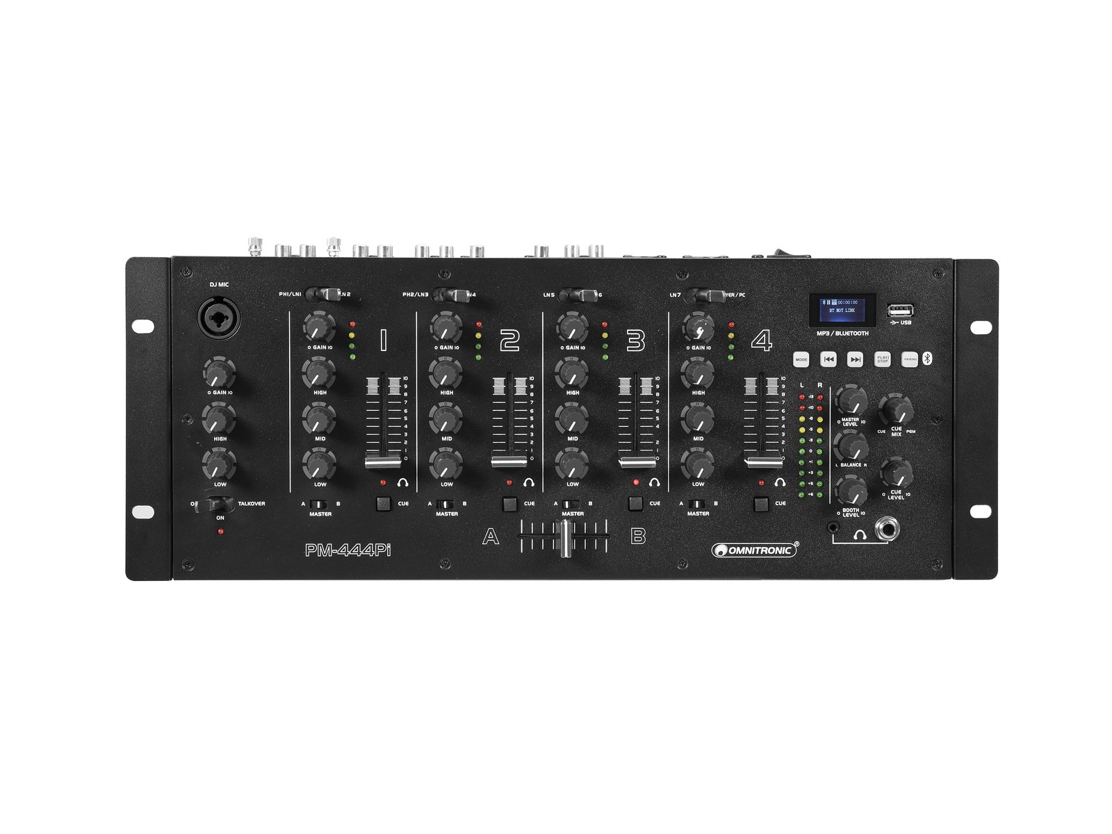 OMNITRONIC PM-444Pi 4-Channel DJ Mixer with Player & USB Interface