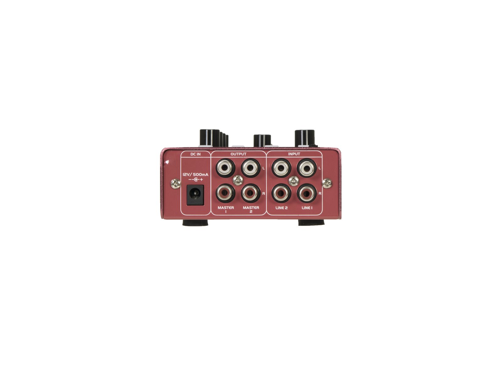 | Channels: | Input chanel: 2 x stereo via RCA, channel control via Rotary dial, 2-band tone control EQ Input chanel: 1 x mono via Jack, channel control via Rotary dial Master output: 1 x stereo with Line-USB switch via RCA, channel control via Rotary dial |
