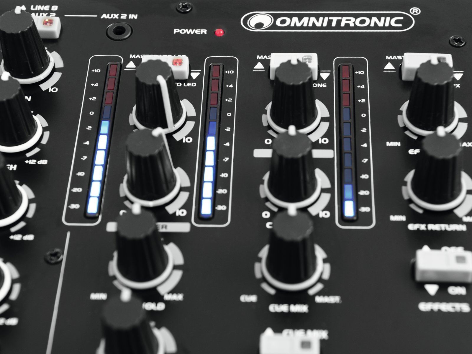 - 10-digit stereo LED level meter, switchable between both master outputs