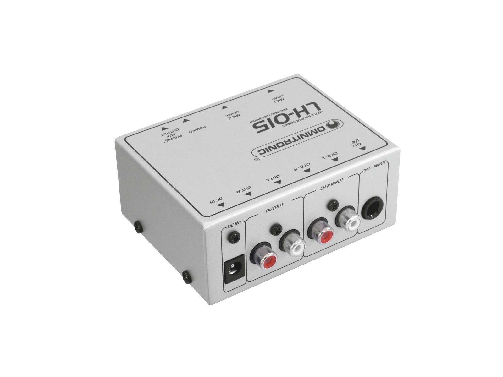 Home DJ mixers OMNITRONIC LH-015 2-Channel Mic/Line Mixer OMNITRONIC LH-015 2-Channel Mic/Line Mixer SKU: 10355015 68,19 € Desconto de %. IVA incluído. Comprar Contactar Adicionar à wishlist 2-channel miniature mic/line mixerDistributes the signal of 2 audio sources (microphones, instruments or line level units) to 1 mono output1 mono mic/line input (6.3 mm jack) with separate level control1 stereo line input (RCA) input with separate level control2 mono master outputs (RCA and 6.3 mm jack) e.g. for PA amplifier, mixer and headphonesPackage contents1 x user manual, 1 x external mains adapter, 4 x foot, 1 x mixerPower supply:12 V 150 mAPower connection:Mains input via Coaxial power connector (M) mounting version power supply cord with AC adapter (provided)Frequency range:20 - 20000 HzS/N ratio:>100 dBImpedance:Input: Microphone 10 kOhmInput: line 20 kOhmOutput: 50 OhmGain:Microphone 32 dBLine 20 dBDimensions:Width: 9,5 cmDepth: 7,3 cmHeight: 4 cmWeight:500 g Marca Omnitronic Tags OMNITRONICLH-0152-ChannelMic/LineMixerMIC/misturadordemicronel2canais Características Partilhar