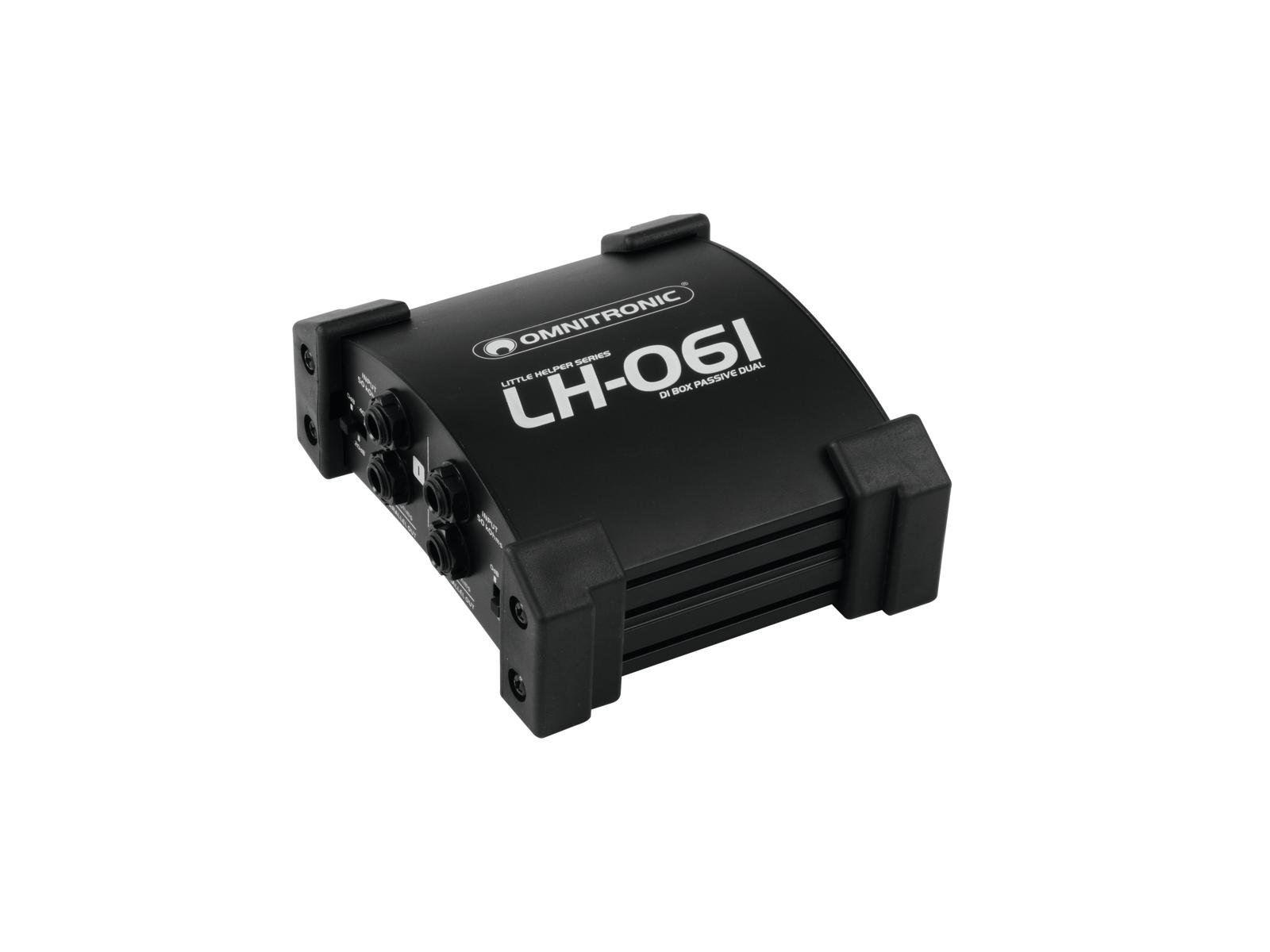 Home Direct Box DI - Converters - pre amp OMNITRONIC LH-061 PRO Passive Dual DI Box OMNITRONIC LH-061 PRO Passive Dual DI Box SKU: 10355061 58,27 € Desconto de %. IVA incluído. Comprar Contactar Adicionar à wishlist Passive 2-channel DI box/splitter, black2 high-impedance signal inputs via two 6.3 mm jacks2 low-impedance XLR outputsConverts 2 separate unbalanced line inputs (e.g. CD player, instruments) into 2 balanced XLR outputs, for connecting a mixerSwitchable input attenuation: 0 dB, -20 dB, -40 dBCables can be routed under the housingPackage contents1 x user manual, 1 x deviceFrequency range:15 - 30000 HzImpedance:Input: 50 kOhmOutput: 600 OhmInput attenuation:0 dB, -20 dB, -40 dB; switchableControl elements:Groundlift selectorConnections:Input: 2 x 6.3 mm jack socket (mono) mounting versionOutput: line via 2 x 3-pin XLRLink: 2 x 6.3 mm jack socket (mono) mounting versionMax. level:Output: +6 dBuDimensions:Width: 13,3 cmDepth: 11,5 cmHeight: 5,4 cmWeight:610 g Marca Omnitronic Tags OMNITRONICLH-061PROpassiveDualDIBoxCaixa Características Partilhar
