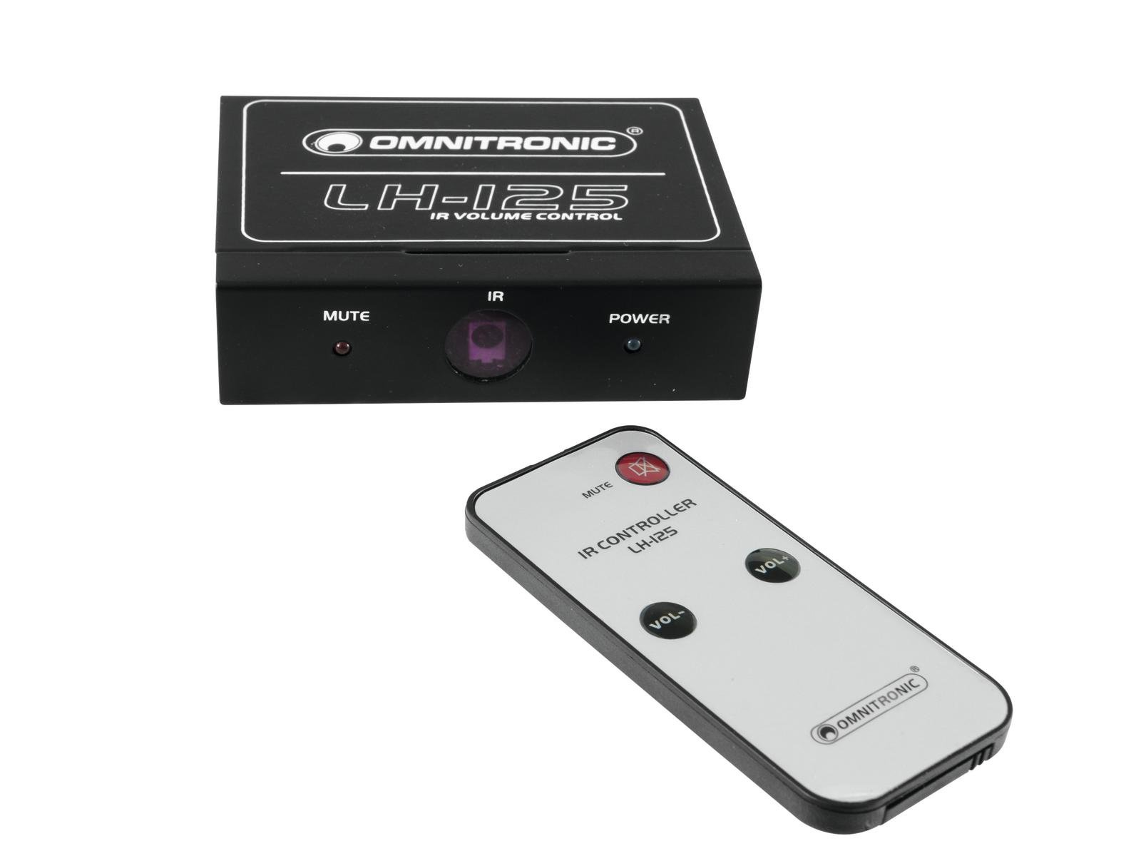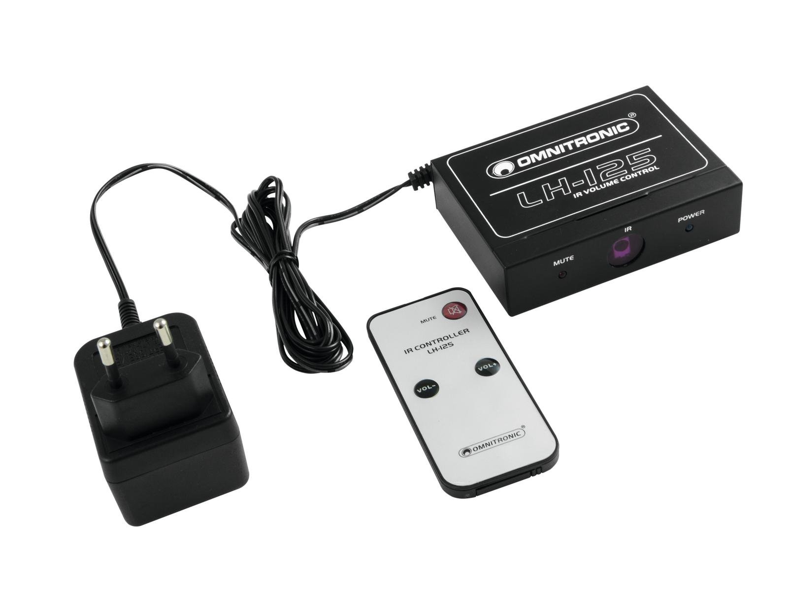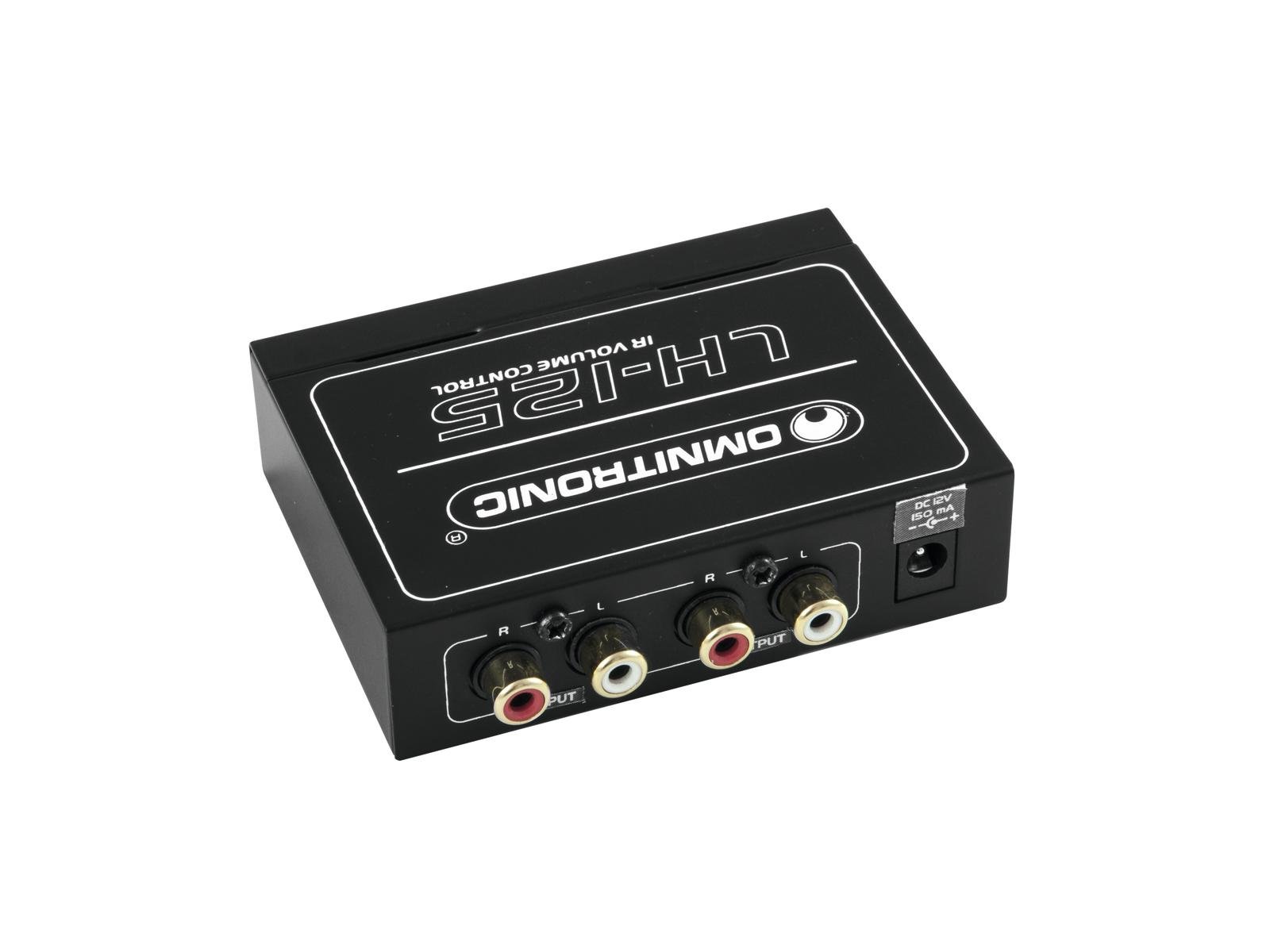 Home Direct Box DI - Converters - pre amp OMNITRONIC LH-125 IR Volume Controller OMNITRONIC LH-125 IR Volume Controller SKU: 10355125 57,74 € Desconto de %. IVA incluído. Comprar Contactar Adicionar à wishlist Stereo volume controller with IR remote controlConvenient stereo volume control of analog audio units with line levelVolume up/down and mute on/offStereo RCA input and outputControl via IR remote controlDesktop console housingPackage contents1 x device, 1 x external mains adapter, 1 x remote control, 4 x foot, 1 x user manual, 1 x batteryPower consumption:0,75 WPower connection:Mains input via Coaxial power connector (M) mounting version power supply cord with AC adapter (provided)Frequency range:20 - 20000 HzS/N ratio:>90 dBTHD:<0,2 % at 1 kHzImpedance:Input: 47 kOhmControl:IR remote controlStatus LED:Power, MuteConnections:Input: line via 1 x stereo RCAOutput: line via 1 x stereo RCAMax. level:Input: +1,65 VOutput: +2 VMaterial:MetalColor:BlackHousing design:Desktop console housingDimensions:Width: 9,3 cmDepth: 7,6 cmHeight: 2,6 cmWeight:360 gDevicePower supply:12 VProtection class:Protection class IIIWeight:180 gExternal mains adapterPower supply:230 V AC, 50 HzProtection class:Protection class IIWeight:180 gRemote controlBattery:1 x Button cell 3.0 V CR2025 lithium manganese built-in Marca Omnitronic Tags OMNITRONICLH-125(IR)VolumeControllerControladorde Características Partilhar