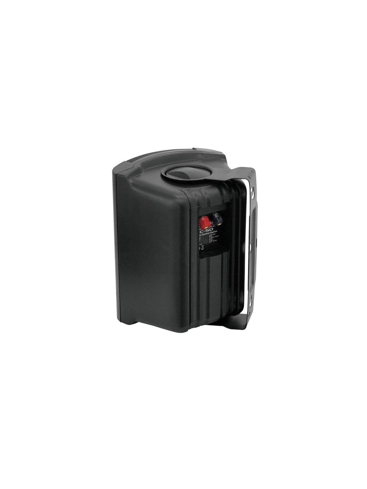 Passive 2-way speaker pair with mountThe passive 2-way speaker pair C-50 by OMNITRONIC are powerful sound reinforcement speakers for permanent installation. Because of their clear, powerful sound they are ideal for restaurants, bars, discotheques or for your conference area.The C-50 are equipped with 13 cm woofers and 2.5 cm dome tweeters. The trapezoidal construction offers a mounting in room corners. Alternatively, you can mount the speakers on the wall or ceiling using the swivel mounting bracket.The speaker pair with robust ABS plastic housing and metal grille is available in black or white.
