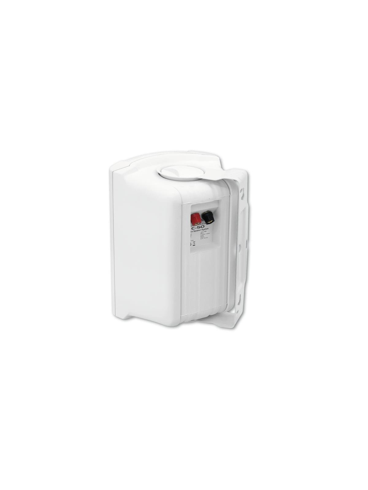 Passive 2-way speaker pair with mountThe passive 2-way speaker pair C-50 by OMNITRONIC are powerful sound reinforcement speakers for permanent installation. Because of their clear, powerful sound they are ideal for restaurants, bars, discotheques or for your conference area.The C-50 are equipped with 13 cm woofers and 2.5 cm dome tweeters. The trapezoidal construction offers a mounting in room corners. Alternatively, you can mount the speakers on the wall or ceiling using the swivel mounting bracket.The speaker pair with robust ABS plastic housing and metal grille is available in black or white.