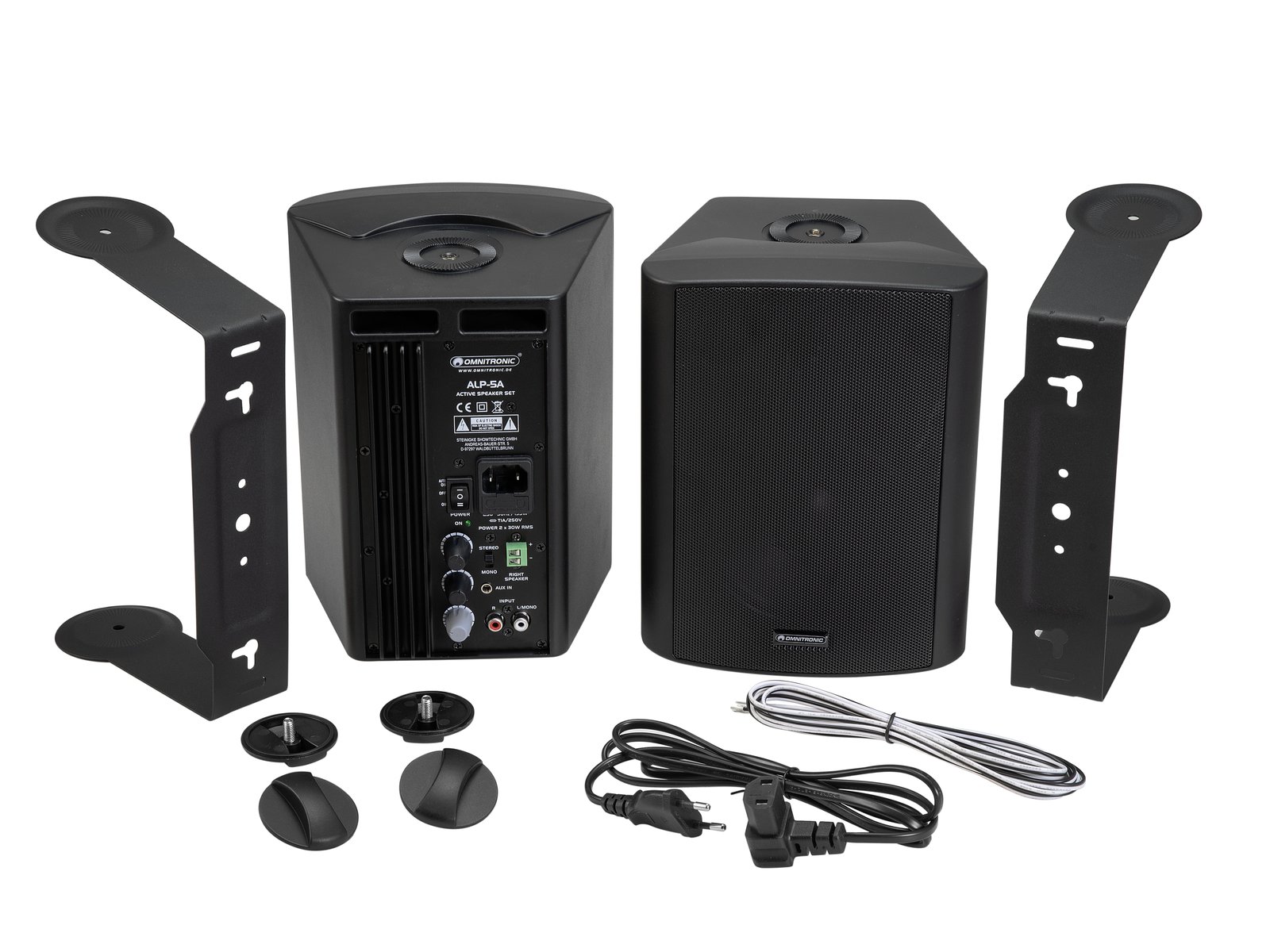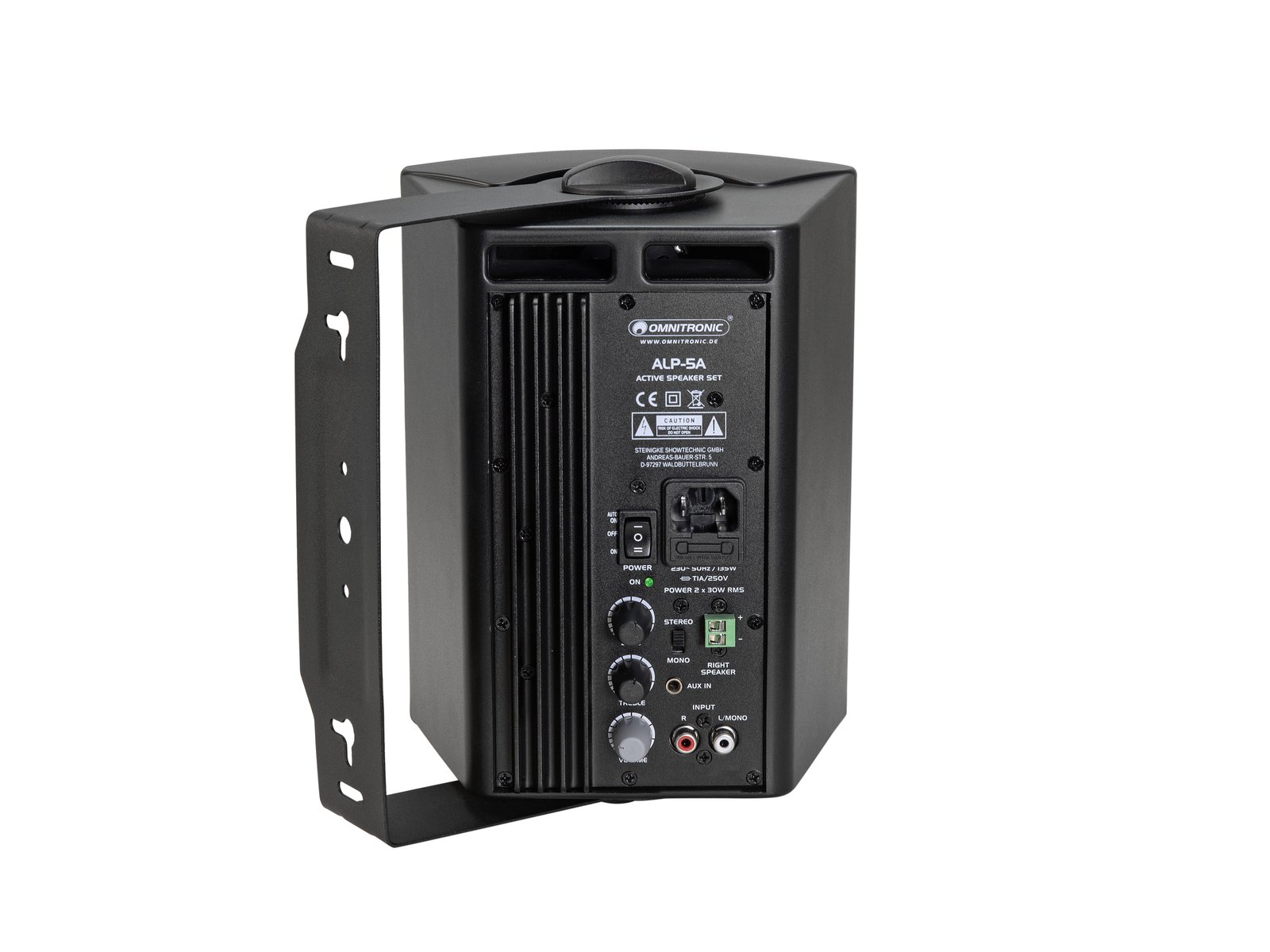 Home INDOOR PUBLIC ADDRESS SPEAKERS OMNITRONIC ALP-5A Active Speaker Set black OMNITRONIC ALP-5A Active Speaker Set black SKU: 11036940 182,43 € Desconto de %. IVA incluído. Comprar Contactar Adicionar à wishlist Active 2-way speaker pair with 5" woofers and 2 x 30 W powerSet of 2 consisting of an active and a passive speaker systemActive speaker system with biamp amplifier anf connection for the passive speaker systemSpeakers with magnetic shieldingSeparate controls for volume, high and low frequenciesAuto-standby functionStereo RCA input and 3.5 mm jack for connection the audio sourceLight-weight ABS plastic cabinet with metal grillePackage contents2 x mounting bracket, 1 x speaker cable, 1 x power cord, 2 x top, 4 x knurled screw, 1 x user manualPower supply:230 V AC, 50 HzPower consumption:Max. 135 WPower connection:Mains input via IEC (M) mounting version 2-pin power supply cord with Euro plugPower:Program: 2x 50WRated: 2x 30W RMSFrequency range:100 - 20000 HzSensitivity:88 dB (1W/1m)Connections:Input: line via 1 x stereo RCAInput: 3.5 mm jack (stereo)Equalizer:Master: 1 x 2-band tone controlSpeaker:Woofer (5.25") approx. 13.3 cmTweeter (1") approx. 2.5 cmDimensions:Width: 18 cmDepth: 24 cmHeight: 16 cmWeight:5,85 kg Marca Omnitronic Tags OMNITRONICALP-5AactiveSpeakerSetblack Características Partilhar