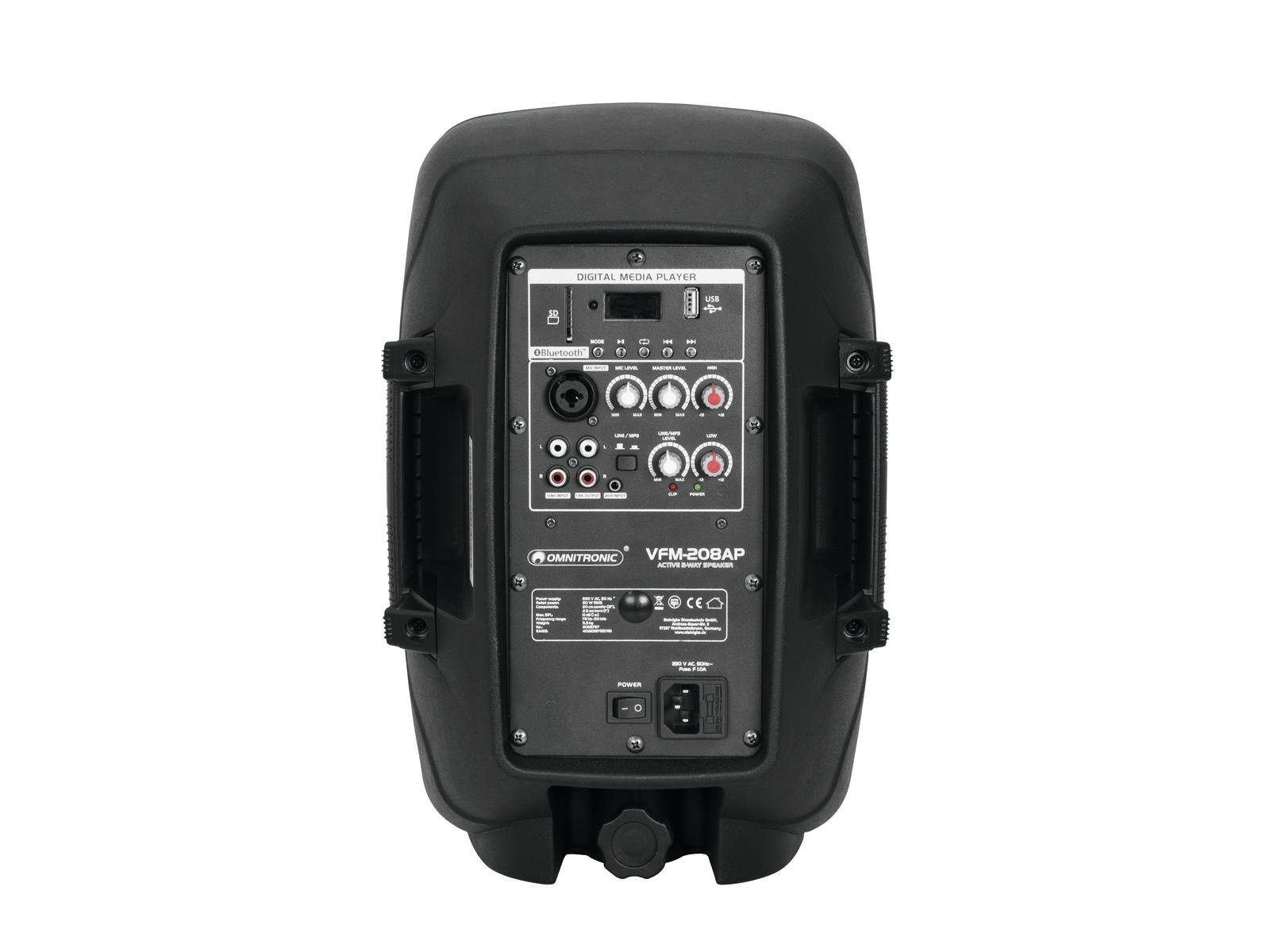 Active 2-way speaker system (8") with 80 W for PA and DJ applications with audio player and Bluetooth