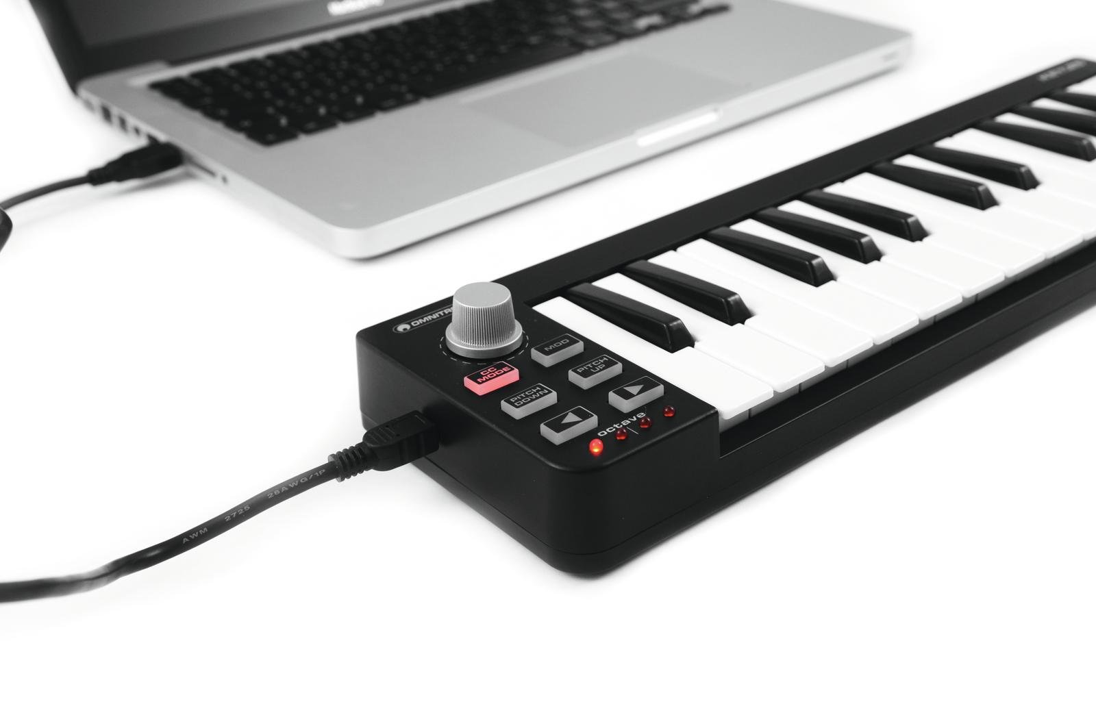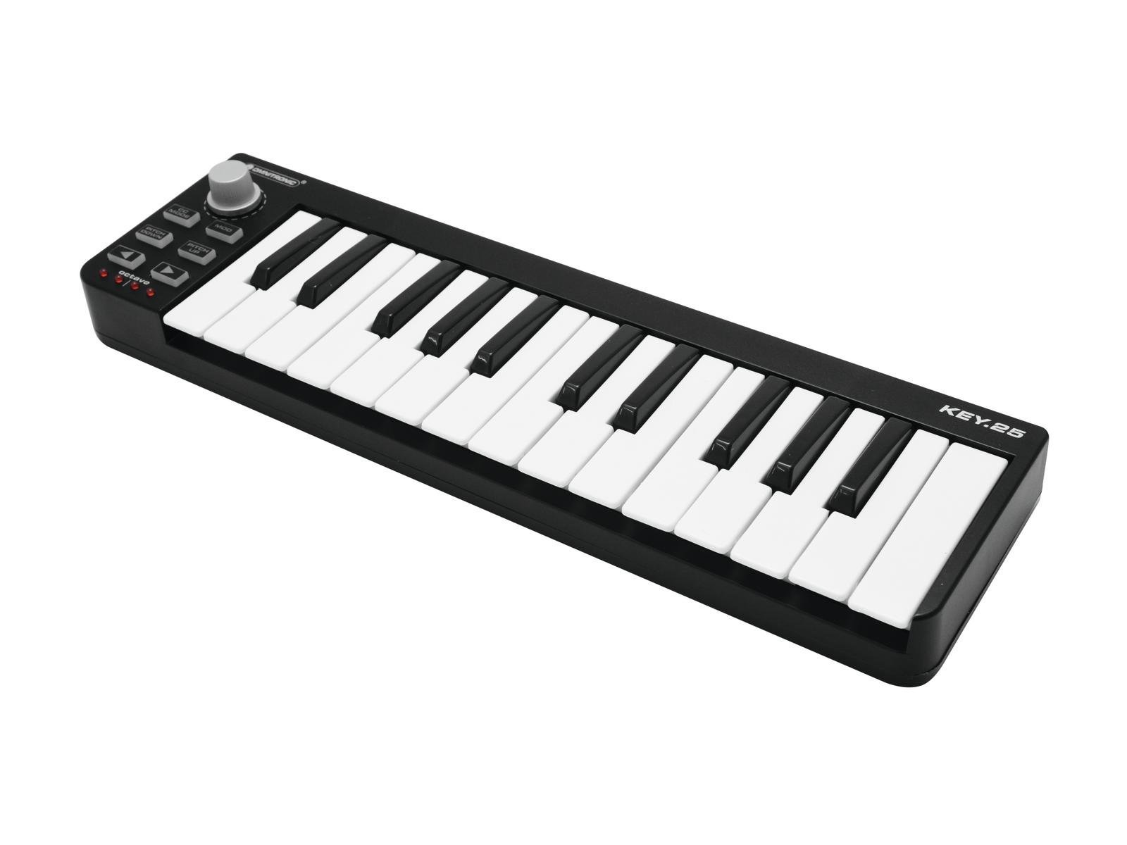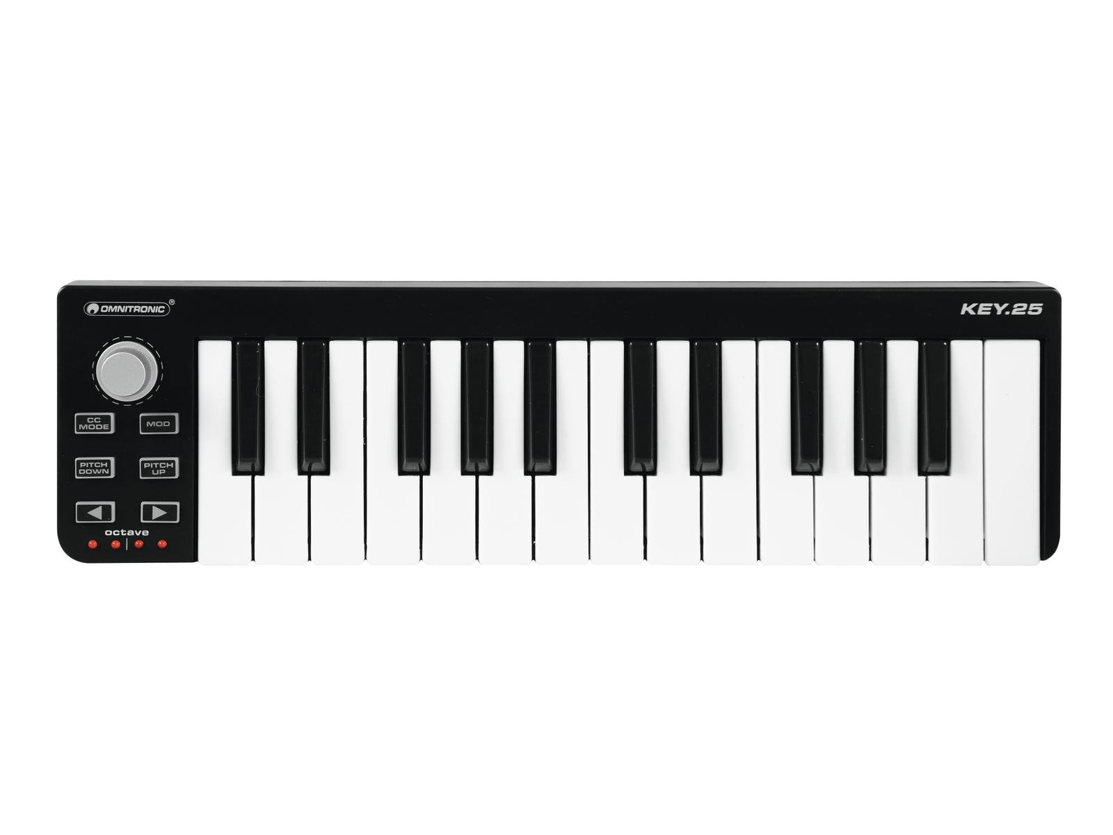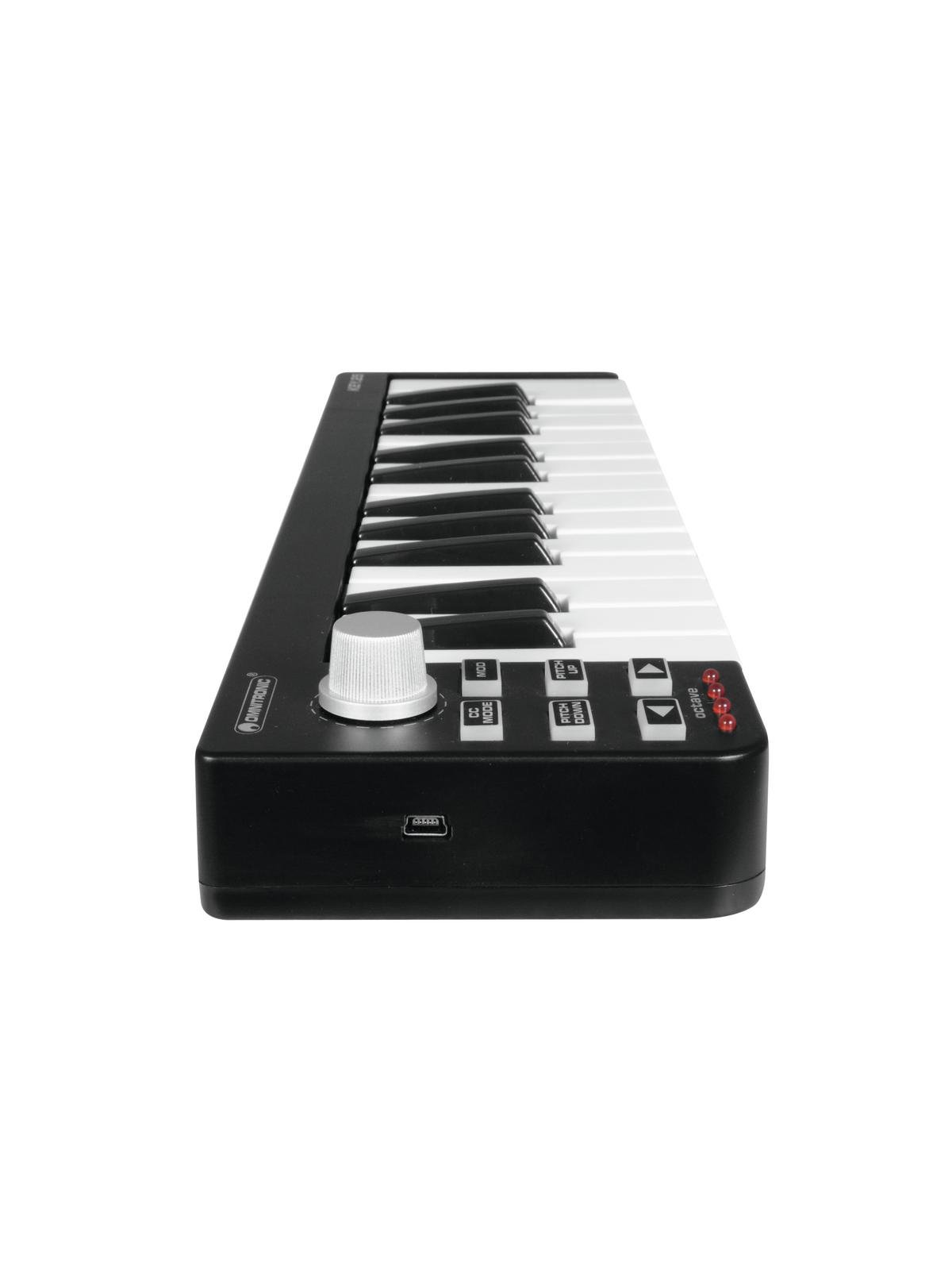 Home MIDI controller OMNITRONIC KEY-25 MIDI Controller OMNITRONIC KEY-25 MIDI Controller SKU: 11045074 63,76 € Desconto de %. IVA incluído. Comprar Contactar Adicionar à wishlist USB MIDI controller with 25 buttons for musicians, producers and DJsUSB MIDI keyboard for creative music production with PC and MacAlso suitable for enlarging DJ setsSuper portable format fits laptop bagsWorks with virtually any audio software25 velocity-sensitive mini keyboard keysArpeggiatorOctave up/down, transposePitch modulationControl via plug and playThe device can be connected via USB to the PCMidi capableCompatible with Win XP, Win Vista, Win 7, Win 10, OS X 10,3 or betterPackage contents1 x controller, 1 x user manual, 1 x uSB cable, 1 x cDPower supply:5 V DC 500 mAPower connection:Mains input via Mini USB (F) mounting version power supply cord for USB A mains connection (provided)Control:Plug and playUSB port:USB 2.0, Typ Mini USB (F) mounting versionPC connect:Via USBMidi capableDimensions:Width: 34,6 cmDepth: 9,7 cmHeight: 5,3 cmWeight:470 gOperating system:Win XP, Win Vista, Win 7, Win 10, OS X 10,3 or better Marca Omnitronic Tags OMNITRONICKEY-25MIDIControllerControlador Características Partilhar