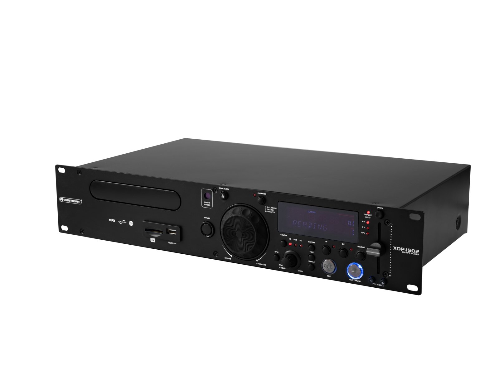 Fresh breeze your DJ rackThe compact XDP-1502 is designed as a user-friendly player for DJ racks. It requires only 2 height units, yet is packed with intuitive features such as pitch control, beat matching and seamless loops. The XDP-1502 plays audio CDs, CD-Rs and MP3 CDs and provides the necessary connections for USB and SD media up to 64 GB. The supplied infrared remote control makes operation particularly convenient and adds a programming mode for your own playlists to the range of functions. This device is so versatile that it is not only indispensable for DJs but will also wow operators of bars, restaurants and dance studios.