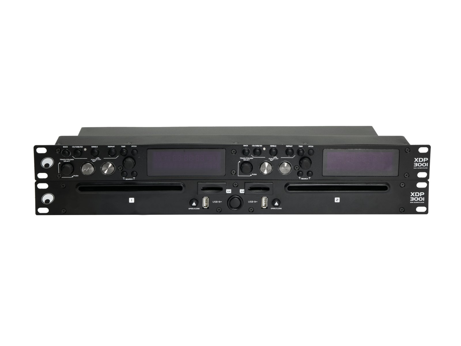 Slim dual media player for your DJ rackThe flat XDP-3001 is designed as a user-friendly dual player for equipment racks. The XDP-3001's control and drive units require only 1 height unit each, yet are packed with intuitive features such as pitch control, cueing and folder navigation. The unit offers playback functions for audio CDs, CD-Rs and MP3 CDs via two decks, as well as USB ports and SD card slots for storage devices up to 64 GB. Its versatility makes it essential for easy music control in bars, restaurants, dance studios and retail stores.