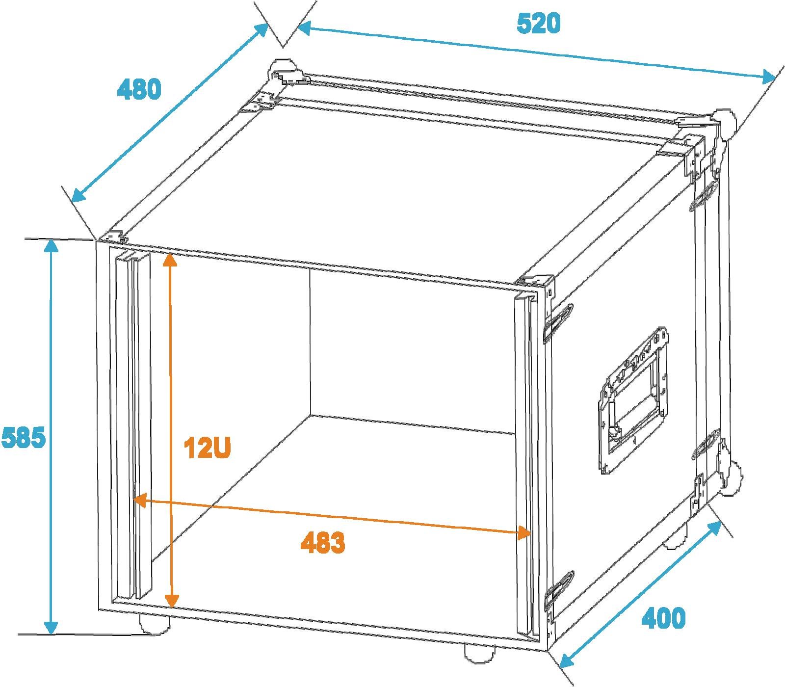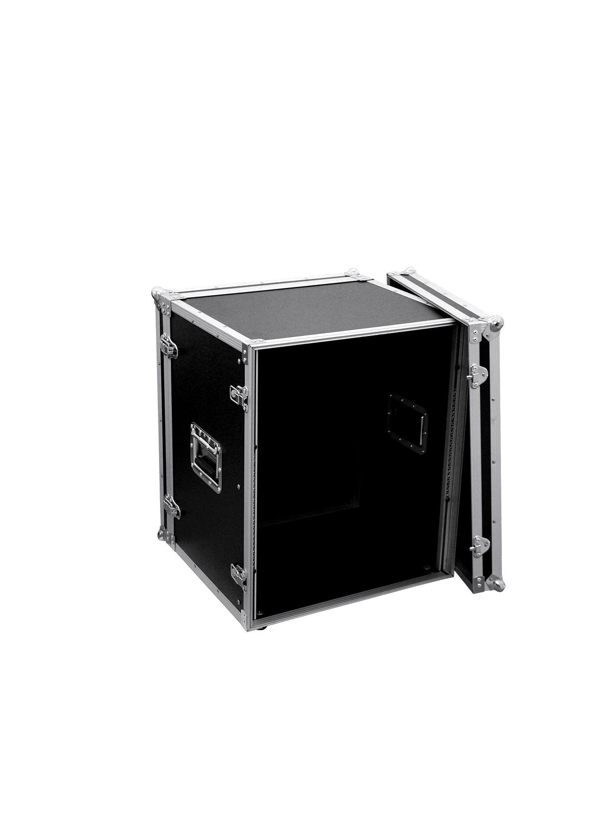 Flightcase for 483 mm devices (19")Transport your control and effect units with a width of 483mm or 19" with the ROADINGER effect rack. The flight case is stable and of high quality, making it ideal for mobile use and the stage. The 6 mm thick walls, the aluminium profile frame with rounded corners and the three-legged, medium-sized steel ball corners give the case its stability. The two lids of the case are removable (double door version). The effect rack is also equipped with eight snap locks with eyelets for locking and two chrome-plated case folding handles. The four large, steel-reinforced rubber feet provide the necessary stability. The maximum load is 25 kg.