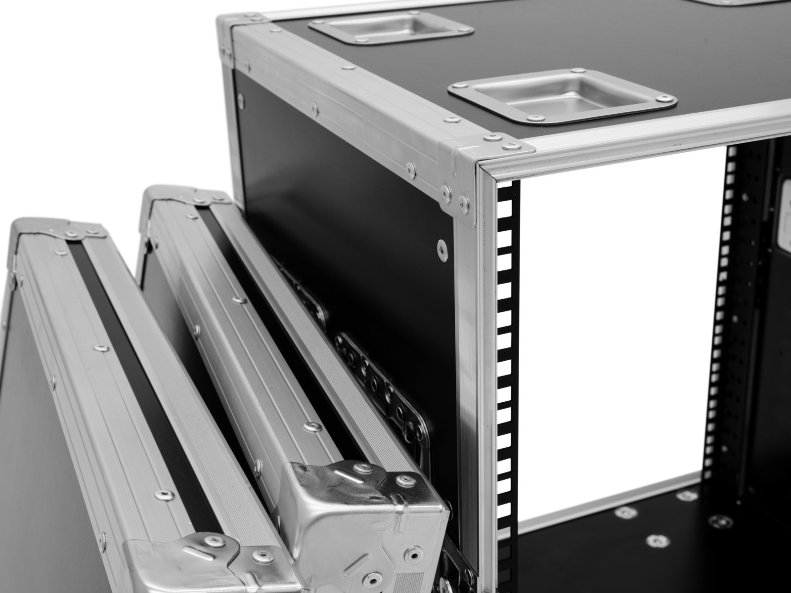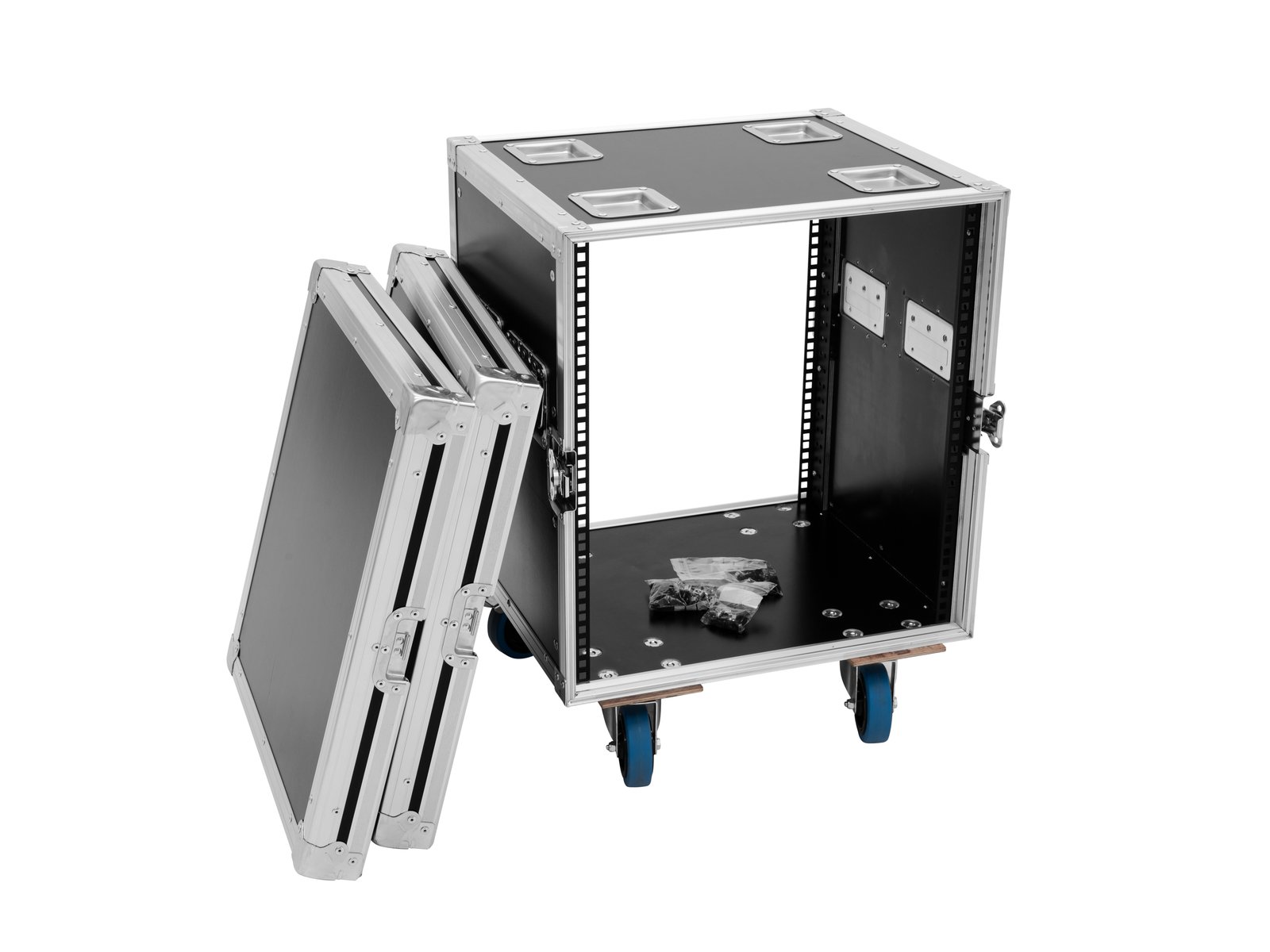 Home Flightcases ROADINGER Rack Profi 12U 45cm with wheels ROADINGER Rack Profi 12U 45cm with wheels SKU: 30109122 699,62 € Desconto de %. IVA incluído. Comprar Contactar Adicionar à wishlist PRO flightcase for 483 mm devices (19")High-quality workmanship with birch multiplex 9 mm, dark brown, laminated2 removable covers (double-Door-Version)Aluminum profile frames 30mm with rounded edges4 hinged, chromium plated case handles4 high-quality butterfly locks4 castors with 2 locking brakesBranded hardwareAvailable in different height units (1 U = 44 mm)With profile rails suitable for (19") approx. 48 cm unitsMade in EuropeFor further information about this product, please refer to the Data Sheet under "Downloads"Maximum load:100 kgRemovable covers:2 pc/pcsAluminum profile frames:30 mmCase handle:4 pc/pcsLock:Butterfly lock: 4 pc/pcsTransport aid:4 x castors with 2 locking brakesUse of brands:Branded hardwareMaterial:Birch multiplex, 9 mmColor:Dark brown, laminatedFront panel width:(19") approx. 48 cmMounting height:Approx. 53.5 cm (12 U)Mounting depth:450 mmDimensions:Width: 55,5 cmDepth: 62 cmHeight: 72 cmWeight:25,20 kg Marca Roadinger Tags ROADINGERRackProfi12U45cmwithWheelscomrodas Características Partilhar
