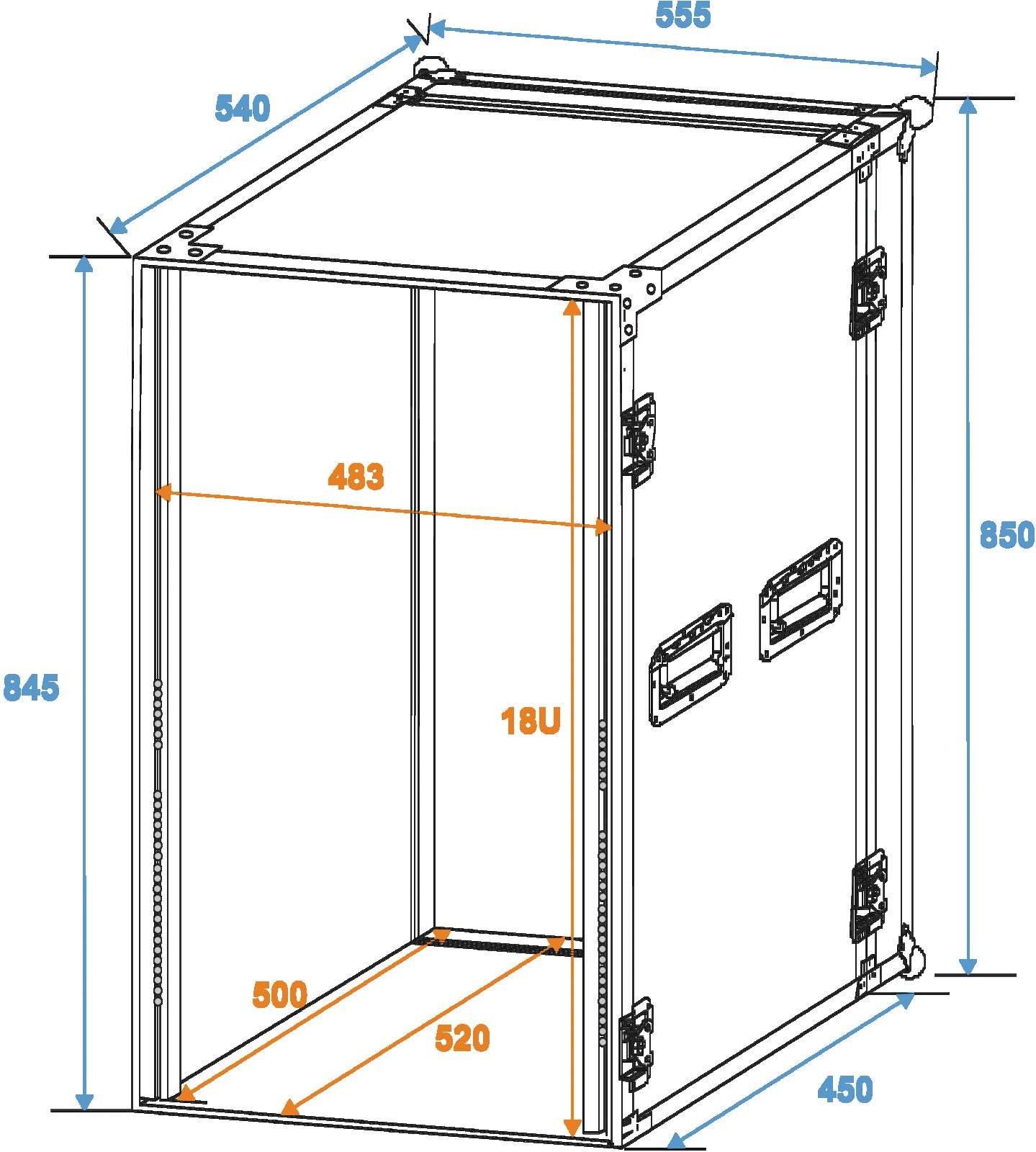 Home Flightcases ROADINGER Rack Profi 18U 45cm ROADINGER Rack Profi 18U 45cm SKU: 30109130 559,70 € Desconto de %. IVA incluído. Comprar Contactar Adicionar à wishlist PRO flightcase for 483 mm devices (19")High-quality workmanship with birch multiplex 9 mm, black, laminatedAluminum profile frames 30mm with rounded edges4 hinged, chromium plated case handles8 high-quality butterfly locks2 wooden slide rails on the bottomBranded hardwareAvailable in different height units (1 U = 44 mm)With profile rails suitable for (19") approx. 48 cm units18 UMade in EuropeFor further information about this product, please refer to the Data Sheet under "Downloads"Maximum load:100 kgAluminum profile frames:30 mmCase handle:4 pc/pcsLock:Butterfly lock: 8 pc/pcsTransport aid:2 x wooden slide rails on the bottomUse of brands:Branded hardwareMaterial:Birch multiplex, 9 mm; plywood multi-layer gluedColor:Black, laminated; dark brown, laminatedFront panel width:(19") approx. 48 cmMounting height:Approx. 80 cm (18 U)Mounting depth:450 mmHousing design:18 UDimensions:Width: 55,5 cmDepth: 63 cmHeight: 86 cmWeight:24,20 kg Marca Roadinger Tags ROADINGERRackProfi18U45cm Características Partilhar
