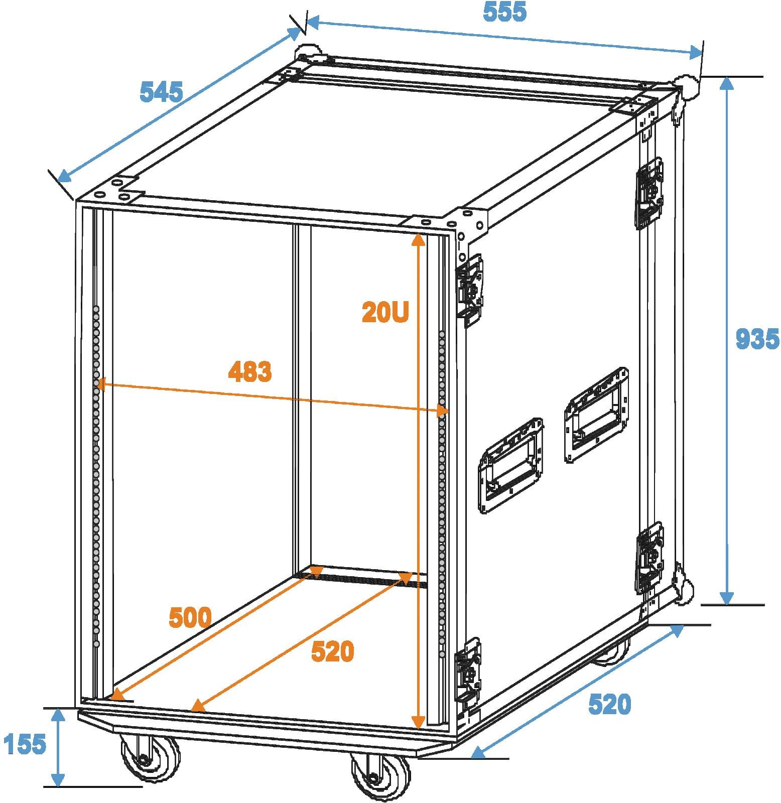 Home Flightcases ROADINGER Rack Profi 20U 45cm with wheels ROADINGER Rack Profi 20U 45cm with wheels SKU: 30109137 795,27 € Desconto de %. IVA incluído. Comprar Contactar Adicionar à wishlist PRO flightcase for 483 mm devices (19")High-quality workmanship with birch multiplex 9 mm, black, laminatedAluminum profile frames 30mm with rounded edges4 hinged, chromium plated case handles8 high-quality butterfly locks4 castors with 2 locking brakesBranded hardwareAvailable in different height units (1 U = 44 mm)With profile rails suitable for (19") approx. 48 cm units20 UMade in EuropeFor further information about this product, please refer to the Data Sheet under "Downloads"Maximum load:100 kgAluminum profile frames:30 mmCase handle:4 pc/pcsLock:Butterfly lock: 8 pc/pcsTransport aid:4 x castors with 2 locking brakesUse of brands:Branded hardwareMaterial:Birch multiplex, 9 mm; plywood multi-layer gluedColor:Black, laminated; dark brown, laminatedFront panel width:(19") approx. 48 cmMounting height:Approx. 89 cm (20 U)Mounting depth:450 mmHousing design:20 UDimensions:Width: 55,5 cmDepth: 63 cmHeight: 1,085 mWeight:33,00 kg Marca Roadinger Tags ROADINGERRackProfi20U45cmwithWheelscomrodas Características Partilhar