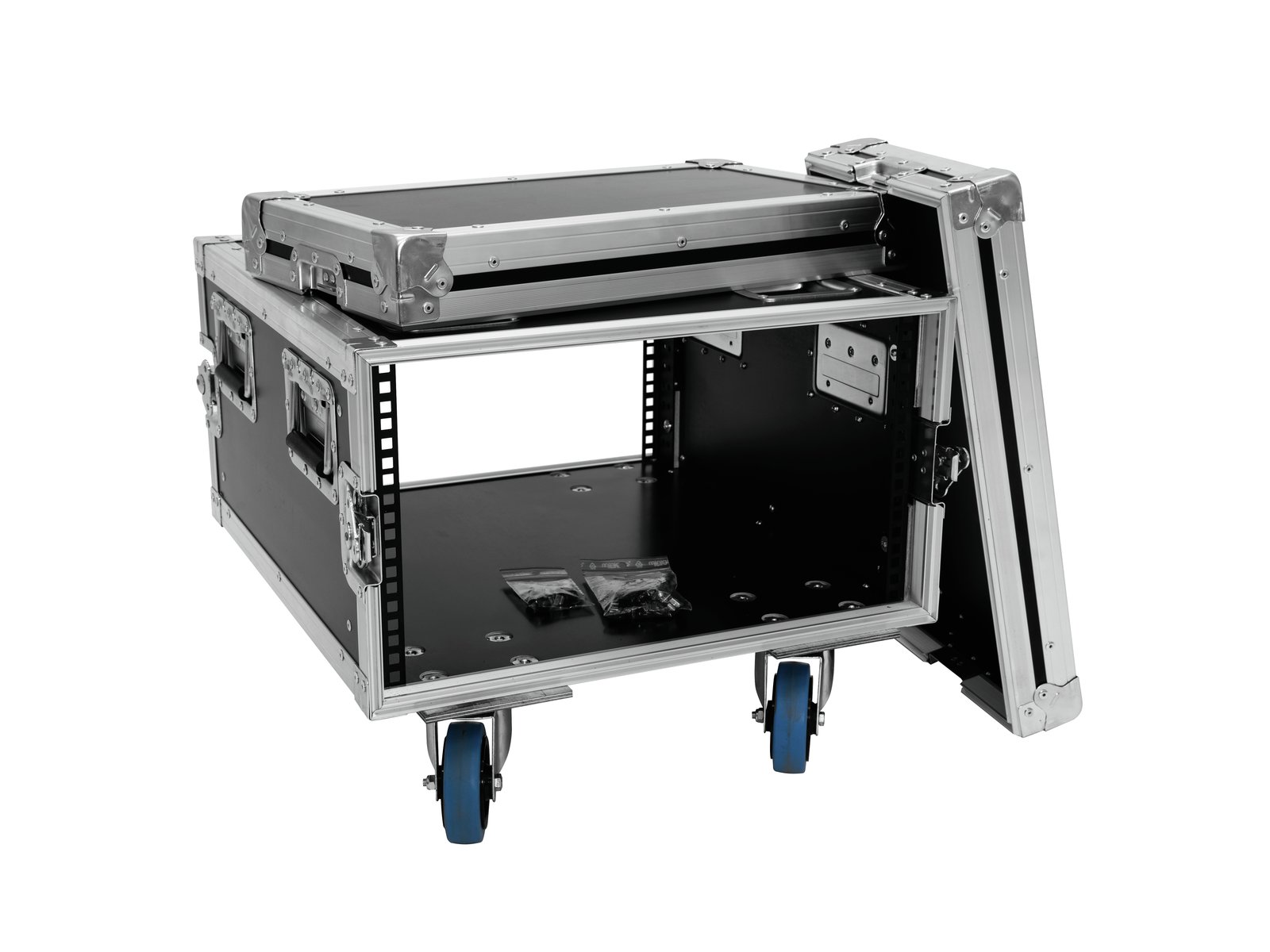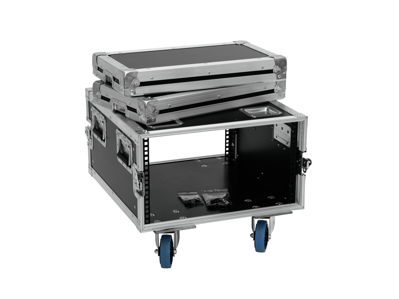 Home Flightcases ROADINGER Rack Profi KM 6U 55cm with wheels ROADINGER Rack Profi KM 6U 55cm with wheels SKU: 30109190 423,32 € Desconto de %. IVA incluído. Comprar Contactar Adicionar à wishlist PRO flightcase for 483 mm devices (19")Stomped profile rails for cage nutsHigh-quality workmanship with birch multiplex 9 mm, dark brown, laminatedAluminum profile frames 30mm with rounded edges4 hinged, chromium plated case handles4 high-quality butterfly locks4 castors with 2 locking brakes4 built-in stacking trays in the coverBranded hardwareAvailable in different height units (1 U = 44 mm)With profile rails suitable for (19") approx. 48 cm unitsWith extra large installation depth6 UMade in EuropeFor further information about this product, please refer to the Data Sheet under "Downloads"Maximum load:100 kgAluminum profile frames:30 mmCase handle:4 pc/pcsLock:Butterfly lock: 4 pc/pcsTransport aid:4 x castors with 2 locking brakes4 x built-in stacking trays in the coverUse of brands:Branded hardwareMaterial:Birch multiplex, 9 mmColor:Dark brown, laminatedFront panel width:(19") approx. 48 cmMounting height:Approx. 26.5 cm (6 U)Mounting depth:550 mmHousing design:6 UDimensions:Width: 53 cmDepth: 71 cmHeight: 43 cmWeight:20,00 kg Marca Roadinger Tags ROADINGERRackProfiKM6U55cmwithWheelscomrodas Partilhar
