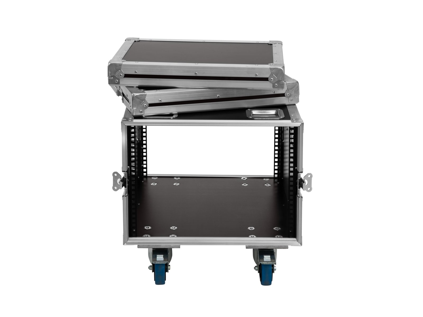 Home Flightcases ROADINGER Rack Profi KM 8U 55cm with wheels ROADINGER Rack Profi KM 8U 55cm with wheels SKU: 30109192 441,03 € Desconto de %. IVA incluído. Comprar Contactar Adicionar à wishlist PRO flightcase for 483 mm devices (19")Stomped profile rails for cage nutsHigh-quality workmanship with birch multiplex 9 mm, black, laminatedAluminum profile frames 30mm with rounded edges4 hinged, chromium plated case handles4 high-quality butterfly locks4 castors with 2 locking brakes4 built-in stacking trays in the coverBranded hardwareAvailable in different height units (1 U = 44 mm)With profile rails suitable for (19") approx. 48 cm unitsWith extra large installation depth8 UMade in EuropeFor further information about this product, please refer to the Data Sheet under "Downloads"Package contents1 x caseMaximum load:100 kgAluminum profile frames:30 mmCase handle:4 pc/pcsLock:Butterfly lock: 4 pc/pcsTransport aid:4 x castors with 2 locking brakes4 x built-in stacking trays in the coverUse of brands:Branded hardwareMaterial:Birch multiplex, 9 mm; plywood multi-layer gluedColor:Black, laminated; dark brown, laminatedFront panel width:(19") approx. 48 cmMounting height:Approx. 35.5 cm (8 U)Mounting depth:550 mmHousing design:8 UDimensions:Width: 71 cmDepth: 55 cmHeight: 53 cmWeight:23,10 kg Marca Roadinger Tags ROADINGERRackProfiKM8U55cmwithWheelscomrodas Características Partilhar