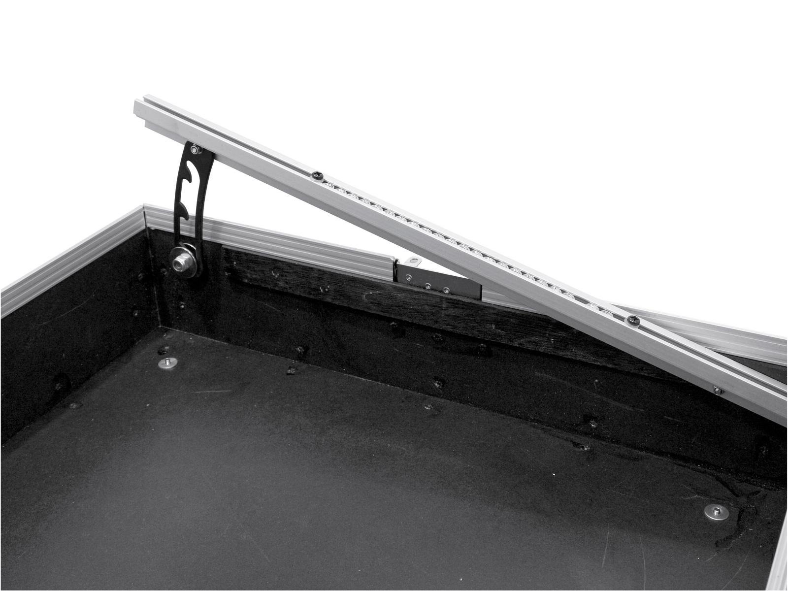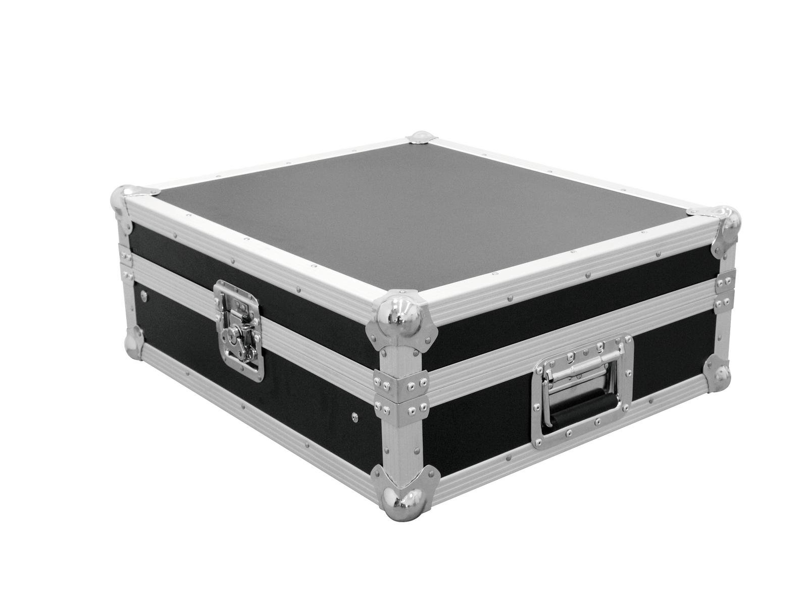 Flightcase for 483 mm units (19")The Mixer Case Profi from ROADINGER is suitable for all your 483 mm devices such as controllers and mixing consoles with 12 U. The diagonally adjustable profile rails and the removable lid allow you to operate your device from above. So you can leave your equipment in the case when in use.The high-quality workmanship of the flight case with 6 mm wall thickness, aluminium profile frame with rounded corners and three-legged, medium-sized steel ball corners ensures high stability.In addition, the flight case is equipped with a padded carrying handle and two high-quality, lockable butterfly locks. The four steel reinforced rubber feet provide the necessary standing security for the case.