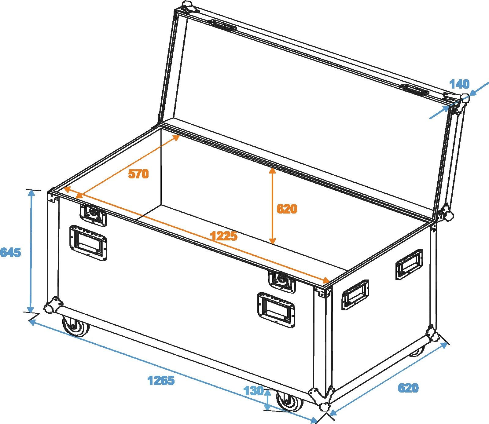 Home Flightcases ROADINGER Universal Tour Case 120cm with wheels Pro ROADINGER Universal Tour Case 120cm with wheels Pro SKU: 30126413 671,28 € Desconto de %. IVA incluído. Comprar Contactar Adicionar à wishlist Trunk case with castors, PRO versionHigh-quality workmanship with birch multiplex 9 mm, black, laminatedAluminum profile frames 30mm with rounded edges8 hinged, chromium plated case handles2 chrome tip-over locks5 Hinge straps2 high-quality butterfly locks4 castors with 2 locking brakesMade in EuropeFor further information about this product, please refer to the Data Sheet under "Downloads"Maximum load:150 kgAluminum profile frames:30 mmCase handle:8 pc/pcsStop hinge:2 pc/pcsLock:Butterfly lock: 2 pc/pcsTransport aid:4 x castors with 2 locking brakesMaterial:Birch multiplex, 9 mmColor:Black, laminatedInside dimensions:1,215 m x 56,5 cm x 62 cmDimensions:Width: 1,26 mDepth: 61 cmHeight: 91,5 cmWeight:40,00 kg Marca Roadinger Tags ROADINGERUniversalTourCase120cmwithWheelsPROCASOdaturnêdecomrodas Características Partilhar