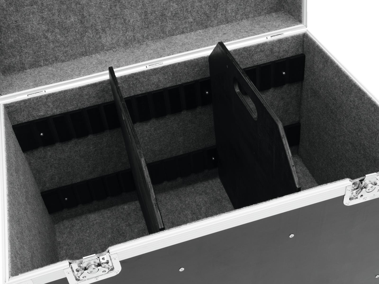Home Flightcases ROADINGER Universal Tour Case 90cm with wheels ROADINGER Universal Tour Case 90cm with wheels SKU: 30126417 541,99 € Desconto de %. IVA incluído. Comprar Contactar Adicionar à wishlist Trunk case with castorsWith 2 DividersHigh-quality workmanship with plywood multi-layer glued 9 mm, black, laminatedInterior with felt covercover with felt coverAluminum profile frames 22mm with rounded edges4 hinged, chromium plated case handles2 chrome tip-over locks2 high-quality butterfly locks with shut-off function4 castors with 2 locking brakesFor further information about this product, please refer to the Data Sheet under "Downloads"Maximum load:100 kgAluminum profile frames:22 mmCase handle:4 pc/pcsStop hinge:2 pc/pcsLock:Butterfly lock: 2 pc/pcs with shut-off functionTransport aid:4 x castors with 2 locking brakesMaterial:Plywood multi-layer glued, 9 mmColor:Black, laminatedInside dimensions:86,5 cm x 57 cm x 49 cmDimensions:Width: 92 cmDepth: 62 cmHeight: 80 cmWeight:38,00 kg Marca Roadinger Tags ROADINGERUniversalTourCase90cmwithWheelsCASOdecomrodas Características Partilhar