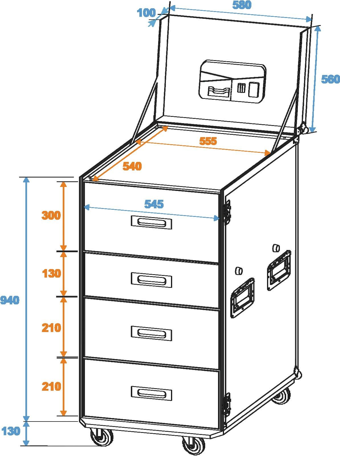 Home Flightcases ROADINGER Universal Drawer Case WDS-1 with wheels ROADINGER Universal Drawer Case WDS-1 with wheels SKU: 3012642A 876,74 € Desconto de %. IVA incluído. Comprar Contactar Adicionar à wishlist Drawer case with castorsWith DrawersWith Desk functionWith documents drawerHigh-quality workmanship with plywood multi-layer glued 9 mm, black, laminatedAluminum profile frames 30mm with rounded edges4 hinged, chromium plated case handles4 high-quality butterfly locks4 castors with 2 locking brakesFor further information about this product, please refer to the Data Sheet under "Downloads"Maximum load:100 kgAluminum profile frames:30 mmCase handle:4 pc/pcsLock:Butterfly lock: 4 pc/pcsTransport aid:4 x castors with 2 locking brakesMaterial:Plywood multi-layer glued, 9 mmColor:Black, laminatedCompartment dimensions:55,5 cm x 54 cm x 21 cm55,5 cm x 54 cm x 13 cm55,5 cm x 54 cm x 30 cmTable console:58 cm x 1 mDimensions:Width: 59 cmDepth: 66 cmHeight: 1,15 mWeight:72,35 kg Marca Roadinger Tags ROADINGERUniversalDrawerCaseWDS-1withWheelsCASOdagavetadecomrodas Características Partilhar