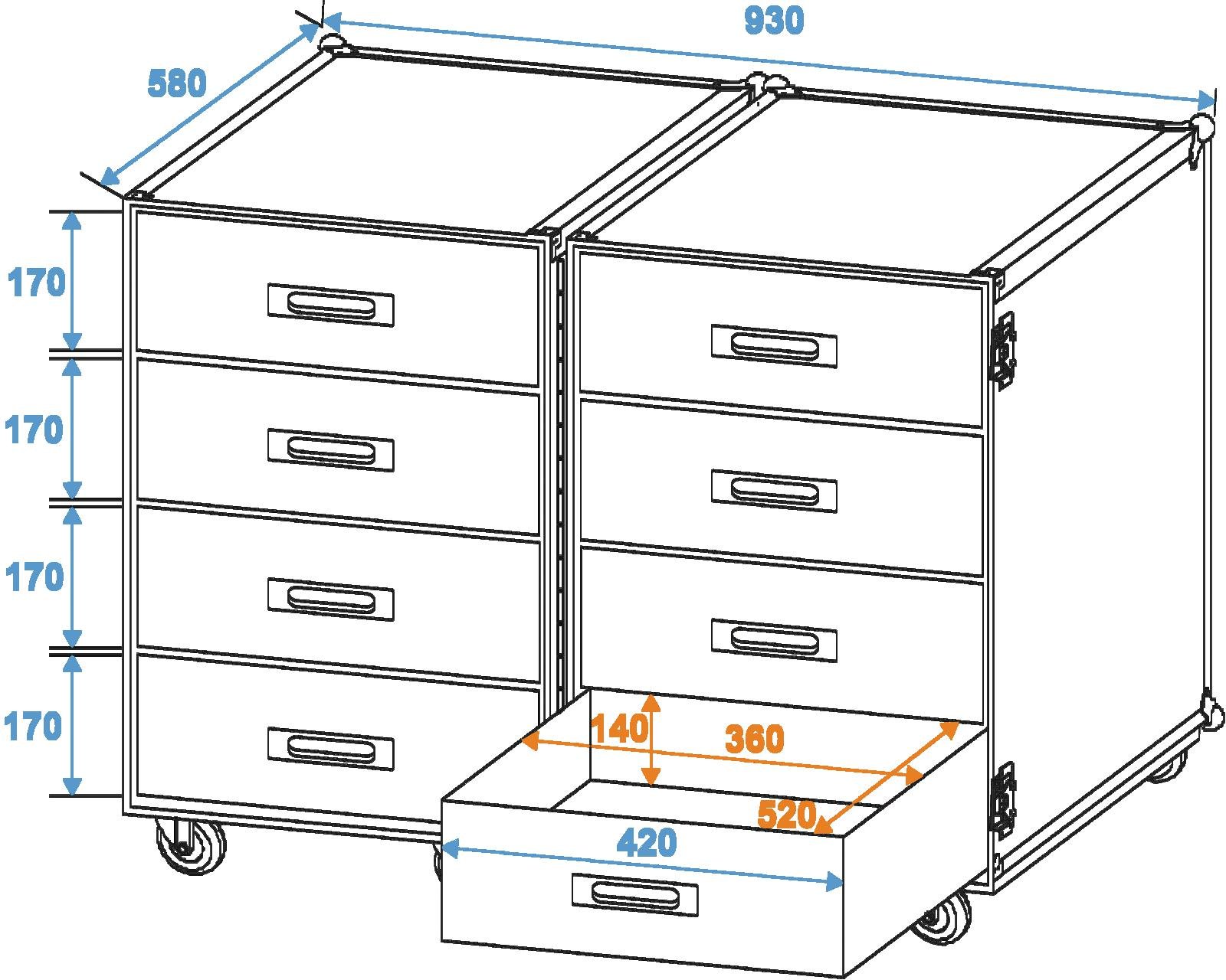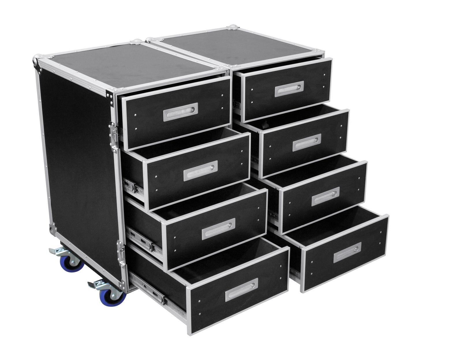 Home Flightcases ROADINGER Universal Roadie Case Double Drawer DD-2 ROADINGER Universal Roadie Case Double Drawer DD-2 SKU: 3012643D 1.096,37 € Desconto de %. IVA incluído. Comprar Contactar Adicionar à wishlist Drawer case with castorsPractical case with 8 drawers for mobile useFoldable in the middle, with strap hinge2 rack lines with 4 drawers each, upholstered with black foamWith 8 DrawersHigh-quality workmanship with plywood multi-layer glued 10 mm, black, laminatedInterior with felt coverAluminum profile frames 30mm with rounded edges4 hinged, chromium plated case handles2 high-quality butterfly locks with shut-off function4 castors with 2 locking brakesFor further information about this product, please refer to the Data Sheet under "Downloads"Maximum load:100 kgAluminum profile frames:30 mmCase handle:4 pc/pcsLock:Butterfly lock: 2 pc/pcs with shut-off functionTransport aid:4 x castors with 2 locking brakesMaterial:Plywood multi-layer glued, 10 mmColor:Black, laminatedCompartment dimensions:36 cm x 52 cm x 14 cmDimensions:Width: 1,15 mDepth: 47 cmHeight: 88 cmWeight:80,30 kg Marca Roadinger Tags ROADINGERUniversalRoadieCaseDoubleDrawerDD-2ROADINGERIRINGER Características Partilhar