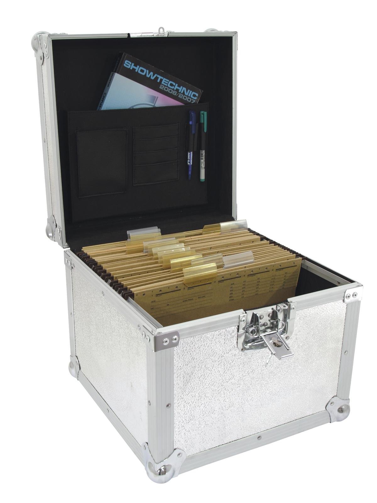 For good measure!Thinking of cases and especially of their interior, it is normally instruments, effects or technical equipment that come to our mind. But these days, bureaucracy and administration also won't stop at the showtechnic industry an therefore it is always advisable to store contracts, time schedules or important documents in a special case. That is why we have come up with a universal documents case. In a hanging file folder the documents can be sorted correctly, the lid offers extra storage for folders and pens. Due to the high-quality workmanship a maximum of protection is guaranteed. By the way, the case does not have to be filled with documents only. Color foils instead of documents are a proper example to show the case's flexibility.