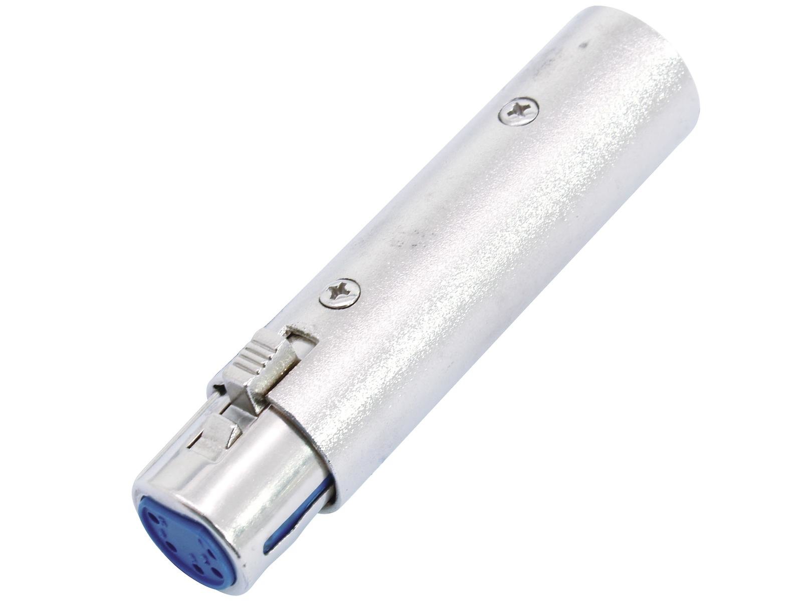 Home DMX Connectors OMNITRONIC Adapter 3pin XLR(M)/5pin XLR(F) OMNITRONIC Adapter 3pin XLR(M)/5pin XLR(F) SKU: 30226575 4,78 € Desconto de %. IVA incluído. Comprar Contactar Adicionar à wishlist DMX adapterXLR male 3-pole to XLR female 5-pole for DMX lightingFor the 5-pole DMX-input at the DMX device (5-pin XLR mounting plug)Package contents1 x adapterPlug A:1 x 3-pin XLR (M)Plug B:1 x 5-pin XLR (F)Material:Metal, 1 mmColor:SilverDimensions:Length: 7,6 cmDiameter: Ø 1,8 cmWeight:40 g Marca Omnitronic Tags OMNITRONICAdapter3pinXLR(M)/5pinXLR(F)AdaptadoromnitrônicoXLR(m)/5pinF. Características Partilhar