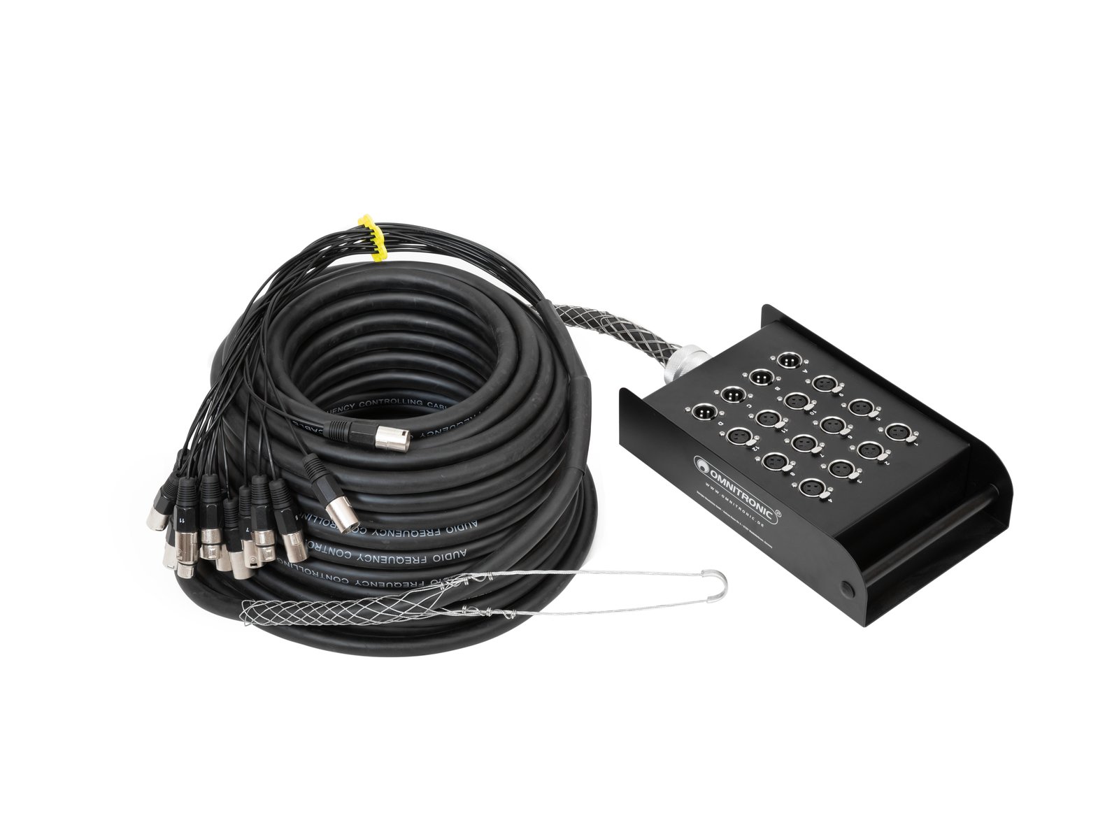 Home Multicore Stagebox OMNITRONIC Multicore Stagebox 12/4 30m OMNITRONIC Multicore Stagebox 12/4 30m SKU: 30304625 329,44 € Desconto de %. IVA incluído. O produto encontra-se sem stock. Adicionar à wishlist Fully assembled distributorFor multi-path signal transfer between stage and mixerProfessional stage box with 16 signal ways (12 inputs and 4 outputs/returns), 3-pin XLR connectorsHighly flexible 30 m mulitcore cable with color coding, splitted into 12 plugs (female) and 4 plugs (male)All signal paths are balanced, with 2 cores, and paired screeningPackage contents1 x device, 1 x bagCable construction:Multicore cableCable length:30 mPlug A:12 x 3-pin XLR (M) mounting version; 4 x 3-pin XLR (F) mounting versionPlug B:4 x 3-pin XLR (M); 12 x 3-pin XLR (M)Color:BlackDimensions:Width: 18 cmDepth: 9 cmHeight: 26 cmWeight:13,85 kg Marca Omnitronic Tags OMNITRONICMulticoreStagebox12/430m Características Partilhar