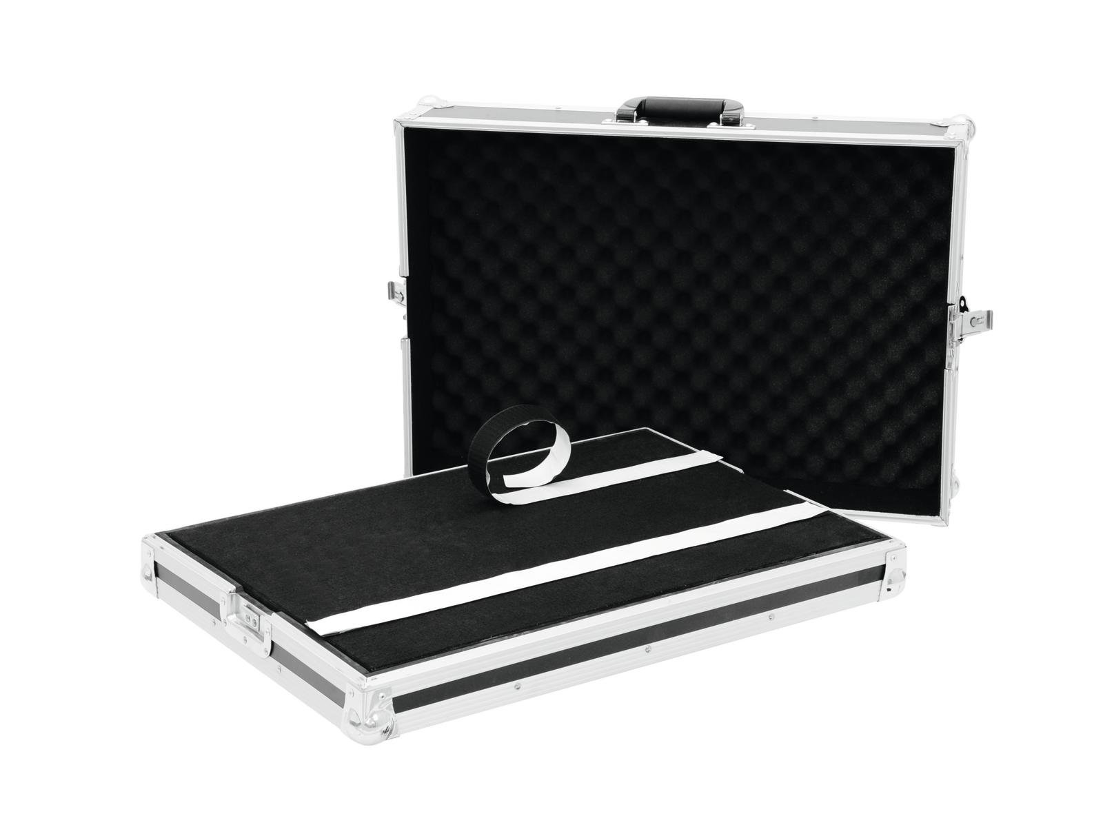 Flightcase for effect pedalsThis ROADINGER flightcase was specially made for your effect pedals. So you always have these devices safely stowed away when you are on the way to your next gig. The high-quality workmanship of the flight case with 7 mm wall thickness, aluminium profile frame with rounded corners and three-legged, medium-sized steel ball corners provides stability. The flight case is additionally equipped with a foam padded interior, it has two high-quality butterfly locks and a robust carrying handle. The four plastic feet provide the necessary stability of the case.