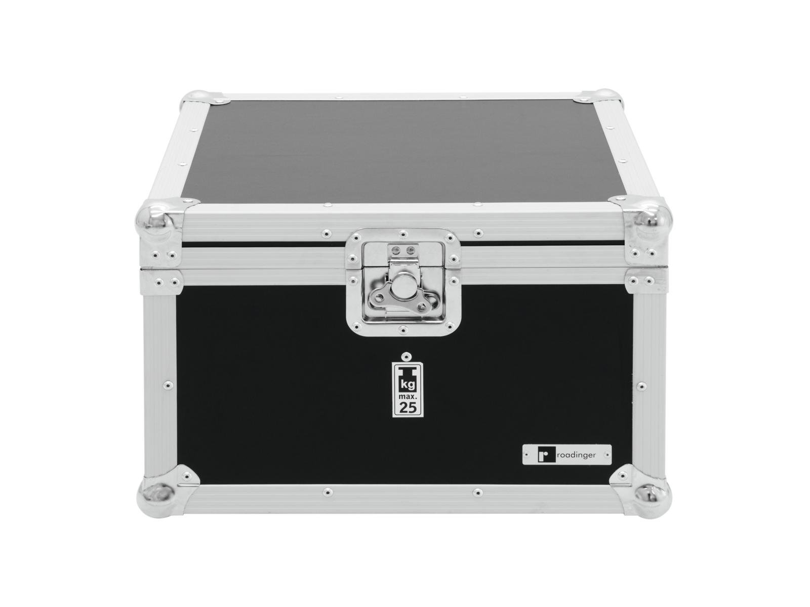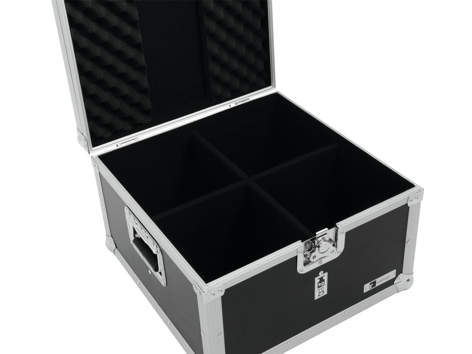 Home Flightcases ROADINGER Flightcase EPS-56 4x PAR-56 Spot short ROADINGER Flightcase EPS-56 4x PAR-56 Spot short SKU: 31000570 162,95 € Desconto de %. IVA incluído. Comprar Contactar Adicionar à wishlist Practical flightcase for PAR-56 spotsWith 4 Device compartmentsHigh-quality workmanship with birch multiplex 7 mm, dark brown, laminatedInterior with foam paddingAluminum profile frames 30mm with rounded edges2 hinged, chromium plated case handles2 chrome tip-over locks1 high-quality butterfly lockFor further information about this product, please refer to the Data Sheet under "Downloads"Maximum load:25 kgAluminum profile frames:30 mmCase handle:2 pc/pcsStop hinge:2 pc/pcsLock:Butterfly lock: 1 pc/pcsMaterial:Birch multiplex, 7 mmColor:Dark brown, laminatedCompartment dimensions:22 cm x 22 cm x 24 cmInside dimensions:44 cm x 44 cm x 24 cmDimensions:Width: 48,5 cmDepth: 48,5 cmHeight: 31 cmWeight:8,70 kg Marca Roadinger Tags ROADINGERFlightcaseEPS-564xPAR-56Spotshortcurto Características Partilhar