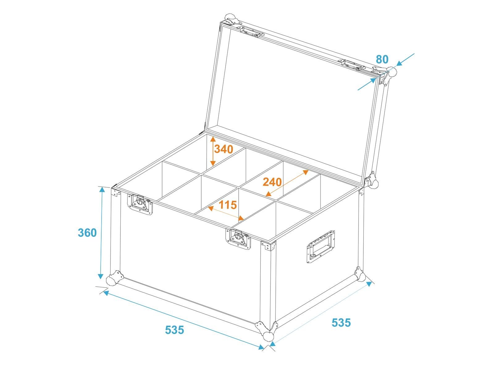 Home Flightcases ROADINGER Flightcase 8x SLS Size M ROADINGER Flightcase 8x SLS Size M SKU: 31000901 345,38 € Desconto de %. IVA incluído. Comprar Contactar Adicionar à wishlist Trunk case, PRO versionIndividually adjustable and removable dividers for universal useWith 8 Device compartmentsHigh-quality workmanship with birch multiplex 7 mm, dark brown, laminatedInterior with foam paddingAluminum profile frames 30mm with rounded edges2 hinged, chromium plated case handles2 chrome tip-over locks1 high-quality butterfly lockBranded hardwareMade in EuropeFor further information about this product, please refer to the Data Sheet under "Downloads"Maximum load:50 kgAluminum profile frames:30 mmCase handle:2 pc/pcsStop hinge:2 pc/pcsLock:Butterfly lock: 1 pc/pcsUse of brands:Branded hardwareMaterial:Birch multiplex, 7 mmColor:Dark brown, laminatedCompartment dimensions:11,5 cm x 24 cm x 34 cmInside dimensions:46 cm x 48 cm x 34 cmDimensions:Width: 53,5 cmDepth: 53,5 cmHeight: 44,5 cmWeight:13,35 kg Marca Roadinger Tags ROADINGERFlightcase8xSLSSize(M)Tamanho Características Partilhar