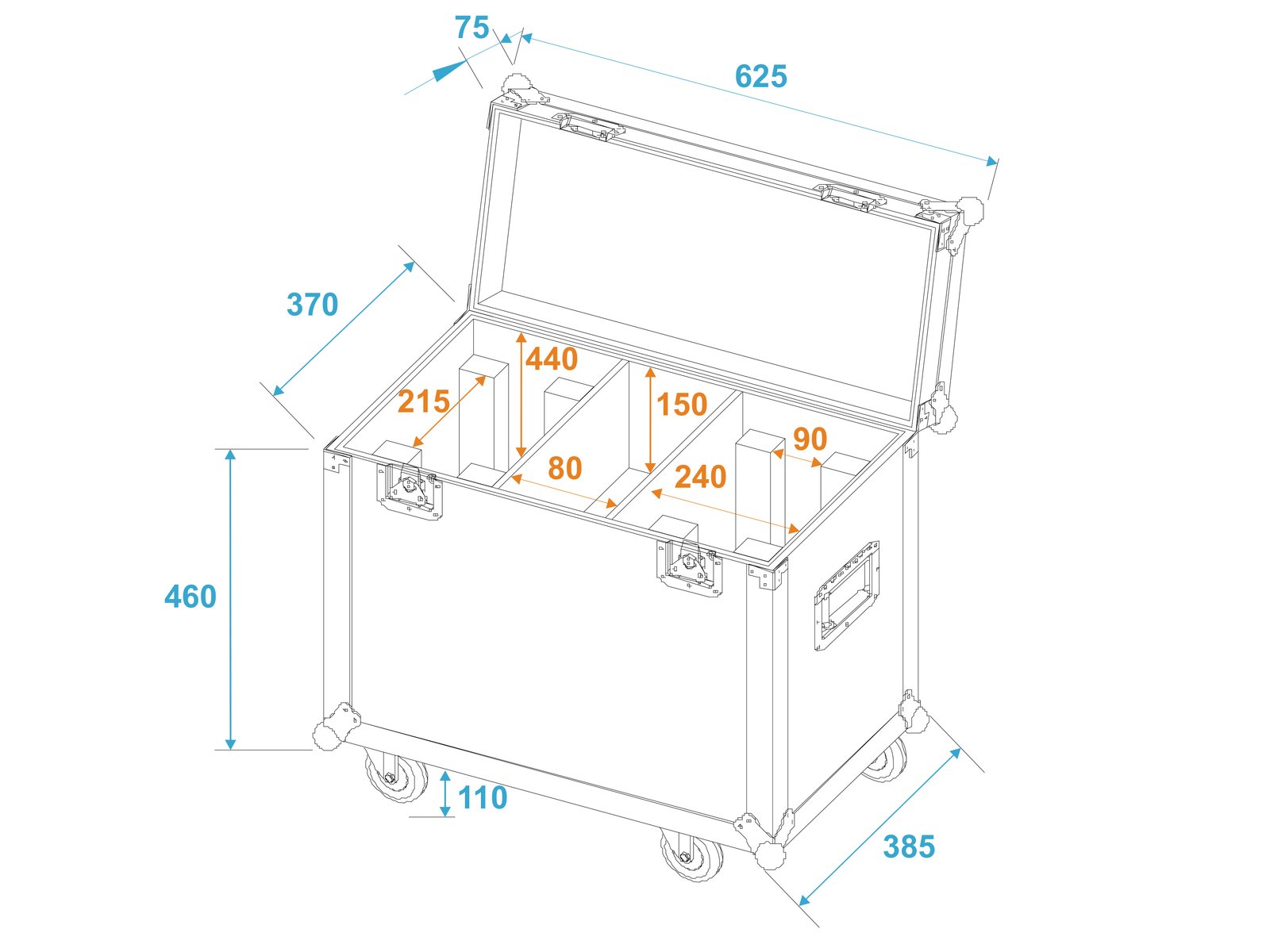Home Flightcases ROADINGER Flightcase 2x TMH-X12 ROADINGER Flightcase 2x TMH-X12 SKU: 31001072 494,16 € Desconto de %. IVA incluído. Comprar Contactar Adicionar à wishlist Trunk case with castorsWith 2 Device compartmentsWith accessory compartmentInterior with foam paddingcover with foam paddingAluminum profile frames 30mm with rounded edges2 hinged, chromium plated case handles2 chrome tip-over locks2 high-quality butterfly locksCastors4 built-in stacking trays in the coverFor further information about this product, please refer to the Data Sheet under "Downloads"Maximum load:50 kgAluminum profile frames:30 mmCase handle:2 pc/pcsStop hinge:2 pc/pcsLock:Butterfly lock: 2 pc/pcsTransport aid:Castors4 x built-in stacking trays in the coverMaterial:Plywood multi-layer glued, 7 mmColor:Black, laminatedCompartment dimensions:24 cm x 33,5 cm x 44 cmAccessory compartment:8 cm x 33,5 cm x 15 cmInside dimensions:56 cm x 33,5 cm x 44 cmDimensions:Width: 62,5 cmDepth: 38,5 cmHeight: 64 cmWeight:17,65 kg Marca Roadinger Tags ROADINGERFlightcase2xTMH-X12 Características Partilhar