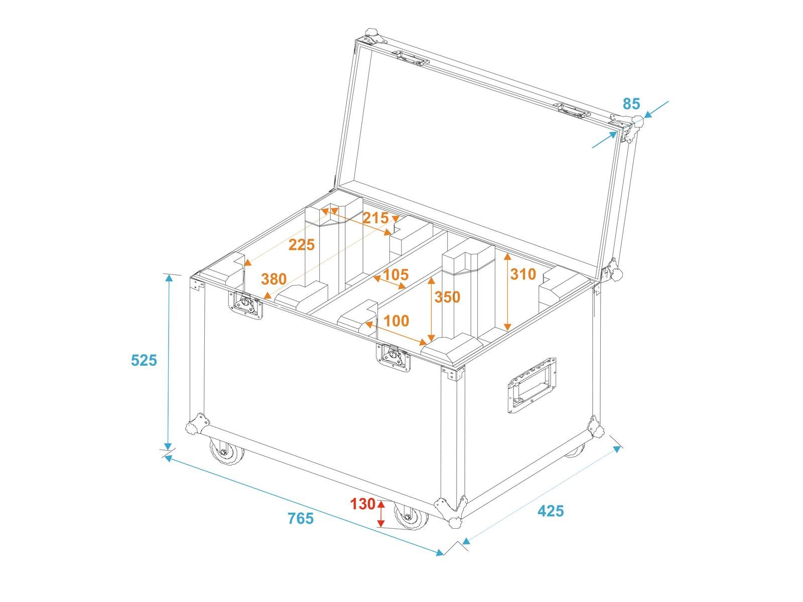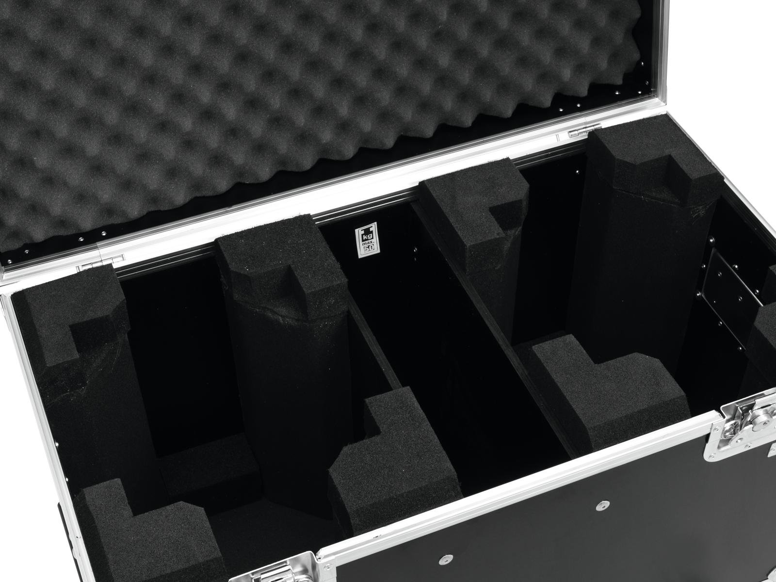 Home Flightcases ROADINGER Flightcase 2x TMH-X5 with Wheels ROADINGER Flightcase 2x TMH-X5 with Wheels SKU: 31005084 699,62 € Desconto de %. IVA incluído. Comprar Contactar Adicionar à wishlist PRO flightcase for 2x TMH-X5With accessory compartmentWith 2 Device compartmentsHigh-quality workmanship with birch multiplex 7 mm, dark brown, laminatedInterior with foam paddingAluminum profile frames 25mm with rounded edges2 hinged, chromium plated case handles2 chrome tip-over locks2 high-quality butterfly locks4 castors with 2 locking brakes4 built-in stacking trays in the coverBranded hardwareMade in EuropeFor further information about this product, please refer to the Data Sheet under "Downloads"Maximum load:50 kgAluminum profile frames:25 mmCase handle:2 pc/pcsStop hinge:2 pc/pcsLock:Butterfly lock: 2 pc/pcsTransport aid:4 x castors with 2 locking brakes4 x built-in stacking trays in the coverUse of brands:Branded hardwareMaterial:Birch multiplex, 7 mmColor:Dark brown, laminatedMiddle compartment:10,5 cm x 38 cm x 31 cmDevice compartment:38 cm x 31 cmInside dimensions:38 cm x 31 cmDimensions:Width: 76,5 cmDepth: 42,5 cmHeight: 61 cmWeight:19,40 kg Marca Roadinger Tags ROADINGERFlightcase2xTMH-X5withWheelscomrodas Características Partilhar