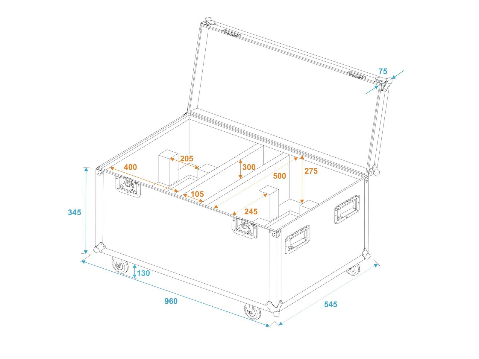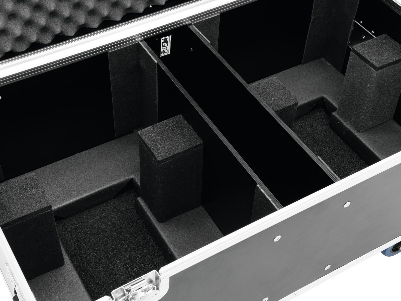 Home Flightcases ROADINGER Flightcase 2x THA-250F ROADINGER Flightcase 2x THA-250F SKU: 31005097 665,97 € Desconto de %. IVA incluído. Comprar Contactar Adicionar à wishlist Trunk case with castors, PRO versionWith accessory compartmentWith 2 Device compartmentsHigh-quality workmanship with birch multiplex 7 mm, dark brown, laminatedInterior with foam paddingAluminum profile frames 25mm with rounded edges4 hinged, chromium plated case handles2 chrome tip-over locks2 high-quality butterfly locks4 castors with 2 locking brakes4 built-in stacking trays in the coverBranded hardwareMade in EuropeFor further information about this product, please refer to the Data Sheet under "Downloads"Maximum load:100 kgAluminum profile frames:25 mmCase handle:4 pc/pcsStop hinge:2 pc/pcsLock:Butterfly lock: 2 pc/pcsTransport aid:4 x castors with 2 locking brakes4 x built-in stacking trays in the coverUse of brands:Branded hardwareMaterial:Birch multiplex, 7 mmColor:Dark brown, laminatedInside dimensions:91,5 cm x 50 cm x 31 cmAccessory compartment:10,5 cm x 50 cm x 35,5 cmDevice compartment:39 cm x 50 cm x 31 cmDimensions:Width: 97 cmDepth: 54 cmHeight: 54 cmWeight:21,00 kg Marca Roadinger Tags ROADINGERFlightcase2xTHA-250F Características Partilhar