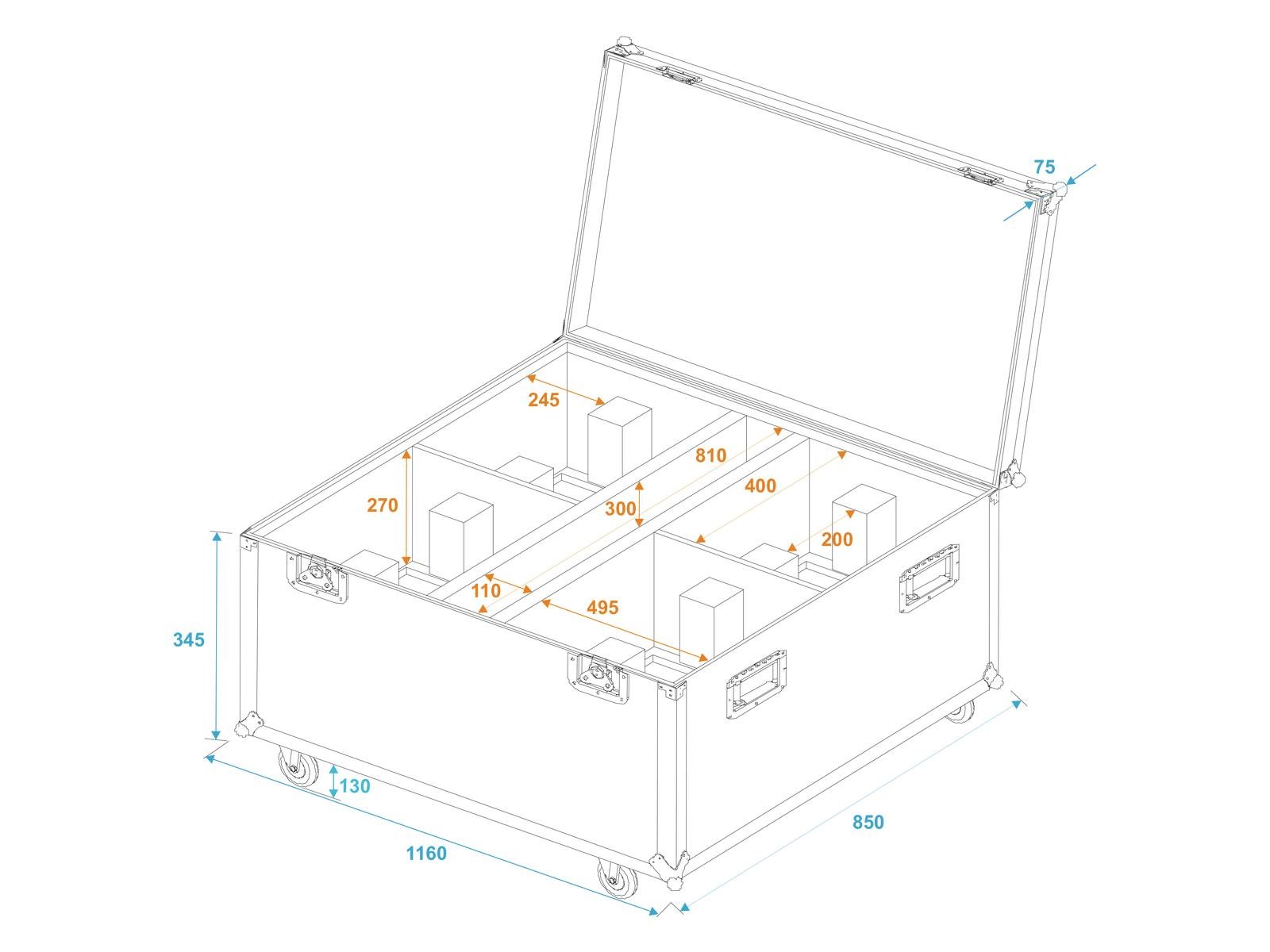Home Flightcases ROADINGER Flightcase 4x THA-250F ROADINGER Flightcase 4x THA-250F SKU: 31005098 689,00 € Desconto de %. IVA incluído. Comprar Contactar Adicionar à wishlist PRO flightcase for 4 x THA-250FWith accessory compartmentWith 4 Device compartmentsHigh-quality workmanship with birch multiplex 7 mm, dark brown, laminatedInterior with foam paddingAluminum profile frames 25mm with rounded edges4 hinged, chromium plated case handles3 chrome tip-over locks2 high-quality butterfly locks4 castors with 2 locking brakes4 built-in stacking trays in the coverBranded hardwareMade in EuropeFor further information about this product, please refer to the Data Sheet under "Downloads"Maximum load:100 kgAluminum profile frames:25 mmCase handle:4 pc/pcsStop hinge:3 pc/pcsLock:Butterfly lock: 2 pc/pcsTransport aid:4 x castors with 2 locking brakes4 x built-in stacking trays in the coverUse of brands:Branded hardwareMaterial:Birch multiplex, 7 mmColor:Dark brown, laminatedAccessory compartment:11 cm x 81 cm x 30 cmDevice compartment:49,5 cm x 20 cm x 27 cmInside dimensions:1,1 m x 81 cm x 30 cmDimensions:Width: 1,16 mDepth: 86 cmHeight: 55 cmWeight:32,60 kg Marca Roadinger Tags ROADINGERFlightcase4xTHA-250F Características Partilhar