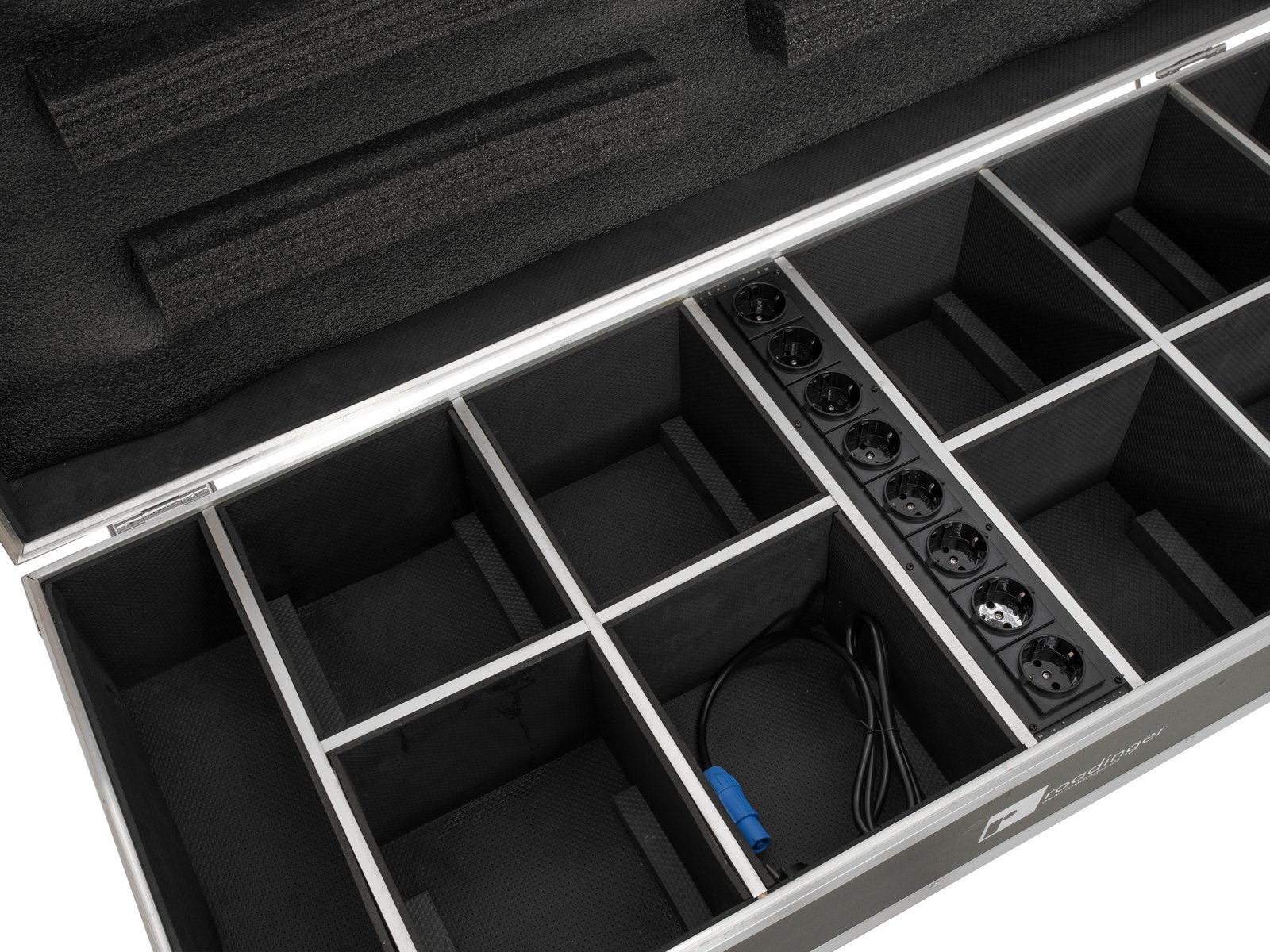 Home Flightcases ROADINGER Flightcase 8x AKKU UP-4 QuickDMX with charging function ROADINGER Flightcase 8x AKKU UP-4 QuickDMX with charging function SKU: 31005144 504,79 € Desconto de %. IVA incluído. Comprar Contactar Adicionar à wishlist Trunk case with castorsWith 8 Device compartmentsWith accessory compartmentInterior with foam paddingAluminum profile frames 25mm with rounded edges4 hinged, chromium plated case handles2 chrome tip-over locks2 high-quality butterfly locks4 castors with 2 locking brakes4 built-in stacking trays in the coverPackage contents1 x case, 1 x user manual, 1 x power cordPower supply:100-240 V AC, 50/60 HzPower consumption:Max. 1150 WPower connection:Mains input via P-Con (blue), mounting version power supply cord with safety plug (provided)Device fuse:5 x 20 mm, F 5 A Fuse replaceableAluminum profile frames:25 mmCase handle:4 pc/pcsStop hinge:2 pc/pcsLock:Butterfly lock: 2 pc/pcsTransport aid:4 x castors with 2 locking brakes4 x built-in stacking trays in the coverMaterial:Plywood multi-layer gluedColor:Black, laminatedDevice compartment:18 cm x 20 cm x 18 cmInside dimensions:1,12 m x 42 cm x 17 cmAccessory compartment:11 cm x 42 cm x 17 cmDimensions:Width: 1,17 mDepth: 47 cmHeight: 39 cmWeight:20,75 kg Marca Roadinger Tags ROADINGERFlightcase8xAKKUUP-4QuickDMXwithchargingfunctioncomfunçãodecarregamento Características Partilhar