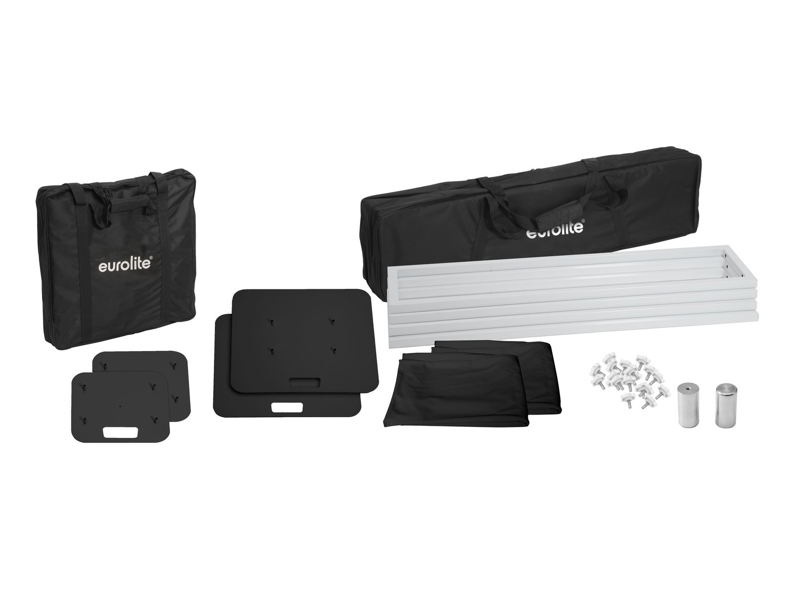 Home DJ-Stands EUROLITE 2x Stage Stand 150cm incl. Cover and Bag, black EUROLITE 2x Stage Stand 150cm incl. Cover and Bag, black SKU: 32000069 504,79 € Desconto de %. IVA incluído. Comprar Contactar Adicionar à wishlist Set with 2 stands for moving headsTranslucent stretch fabric - can be backlit with any lighting effectSuitable for moving heads with a maximum weight of 30 kgPin (Ø 35 mm) for mounting speakersFast assembly without any toolsStand weight 12 kg eachWashable (needs to be treated with flame retardant spray afterwards)B1 low flammabilityFor application areas such as: Trade fair and shop fitting; Wedding/gala/eventsPackage contents1 x bag, 1 x stand, 1 x plateEUROLITE Spare Cover for Stage Stand Set 150cm blackPackage contents1 x textile coverMaterial:Steel; steel (powder-coated)Color:Black, paintedDimensions:Width: 50 cmDepth: 50 cmHeight: 1,5 mWeight:26,67 kgEUROLITE Stage Stand black plates + bag blColor:BlackPlate:30 cm x 30 cmDimensions:Width: 50 cmDepth: 50 cmHeight: 1 mWeight:15,80 kgEUROLITE Part 2 Stage Stand 150cm Bag, Truss & CoverWeight:10,32 kgEUROLITE Spare Cover for Stage Stand Set 150cm blackColor:BlackDimensions:Length: 1,5 mWidth: 85 cmWeight:280 g Marca Eurolite Tags EUROLITE2xStagestand150cmincl.coverandBagblackCapaeBolsapreto Características Partilhar