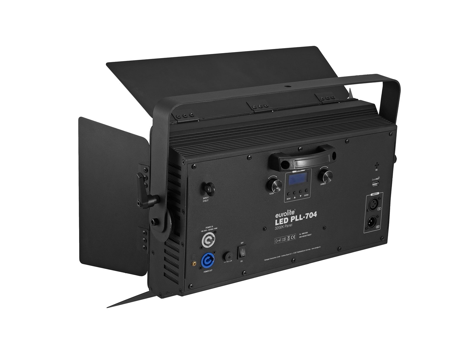 DMX-controlled surface light with 704 warm white LEDs, QuickDMX port and barn doors