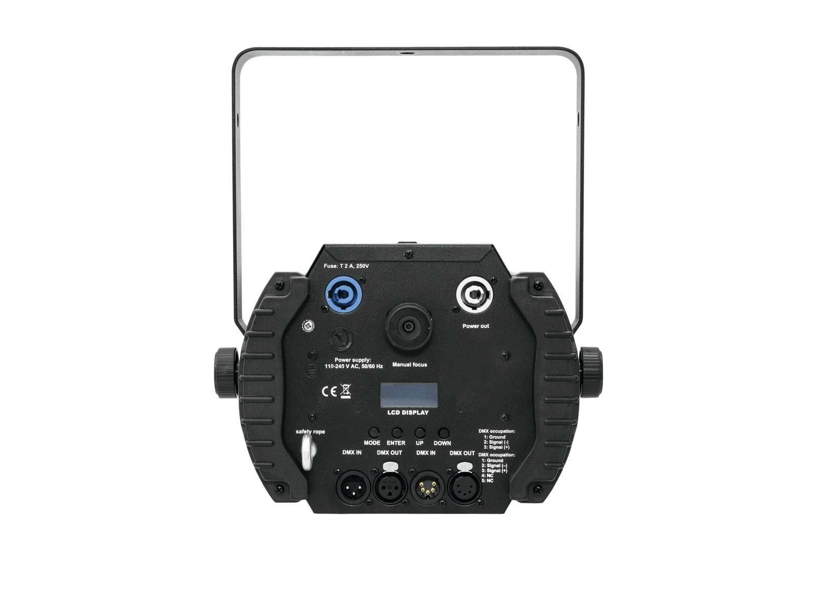 - 1 powerful LED 120 W COB (chip-on-board) 4in1 QCL RGBW (homogenous color mix)