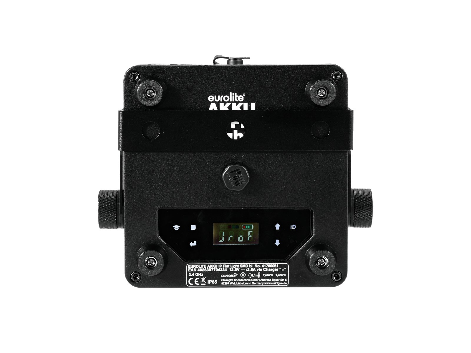 Flat IP65 spotlight with 81 x RGBW SMD LED, QuickDMX transceiver and IR remote control