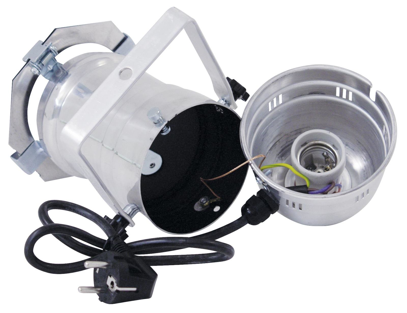 Home ML/Studio PAR spots EUROLITE PAR-30 Spot silver EUROLITE PAR-30 Spot silver SKU: 42103522 25,68 € Desconto de %. IVA incluído. Comprar Contactar Adicionar à wishlist PAR-30 housing with E-27 socket (with plug + cable)4 clip-to-hold clamps with spring locks for comfortable opening of the color filter frameStrong clamps with extension springs for safe hold and for quick opening of the rear housing coverBlackened tube for precise light outputSuitable for different spot anglesSmall lighting-systems can also be realized with a small budgetControl via plug and playWith Mounting bracketFor PAR 30For application areas such as: Advertisement/Shop window; Decoration; Clubs/dancing schoolPackage contents1 x spotlight, 1 x mounting bracket, 1 x filter frame, 1 x user manualPower supply:230 V AC, 50 HzPower consumption:Max. 100 WIP classification:IP20Protection class:Protection class IPower connection:Fixed power supply cord with safety plugCable length:Approx. 0,4 mBase:E27Lamp type:SelectableColor generation:Via color filter frameControl:Plug and playHousing color:SilverAttachment system:Mounting bracketMaterial:AluminumSlot for spot length:12,8 cm x 12,8 cmDimensions:Length: 23,5 cmWidth: 14,5 cmHeight: 21 cmWeight:470 gMounting bracketMaterial:AluminumFilter frameMaterial:AluminumDimensions:Length: 12,6 cmWidth: 12,6 cmDiameter: Ø 9,4 cmWeight:18 g Marca Eurolite Tags EUROLITEPAR-30Spotsilverprateado Características Partilhar