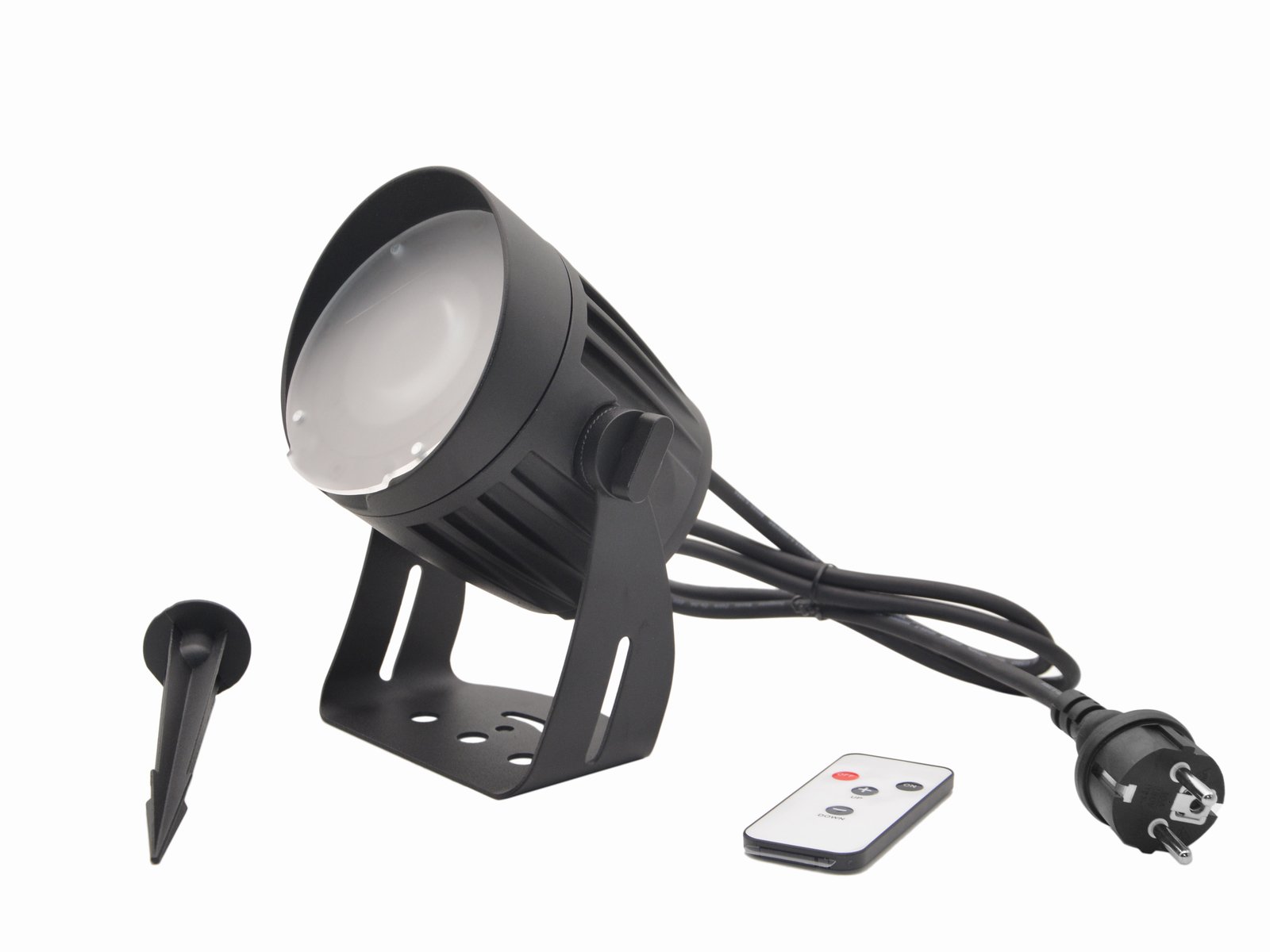 - 1 x spotlight, 1 x user manual, 1 x stake, 1 x remote control, 1 x screw, 2 x washer, 1 x diffusor cover