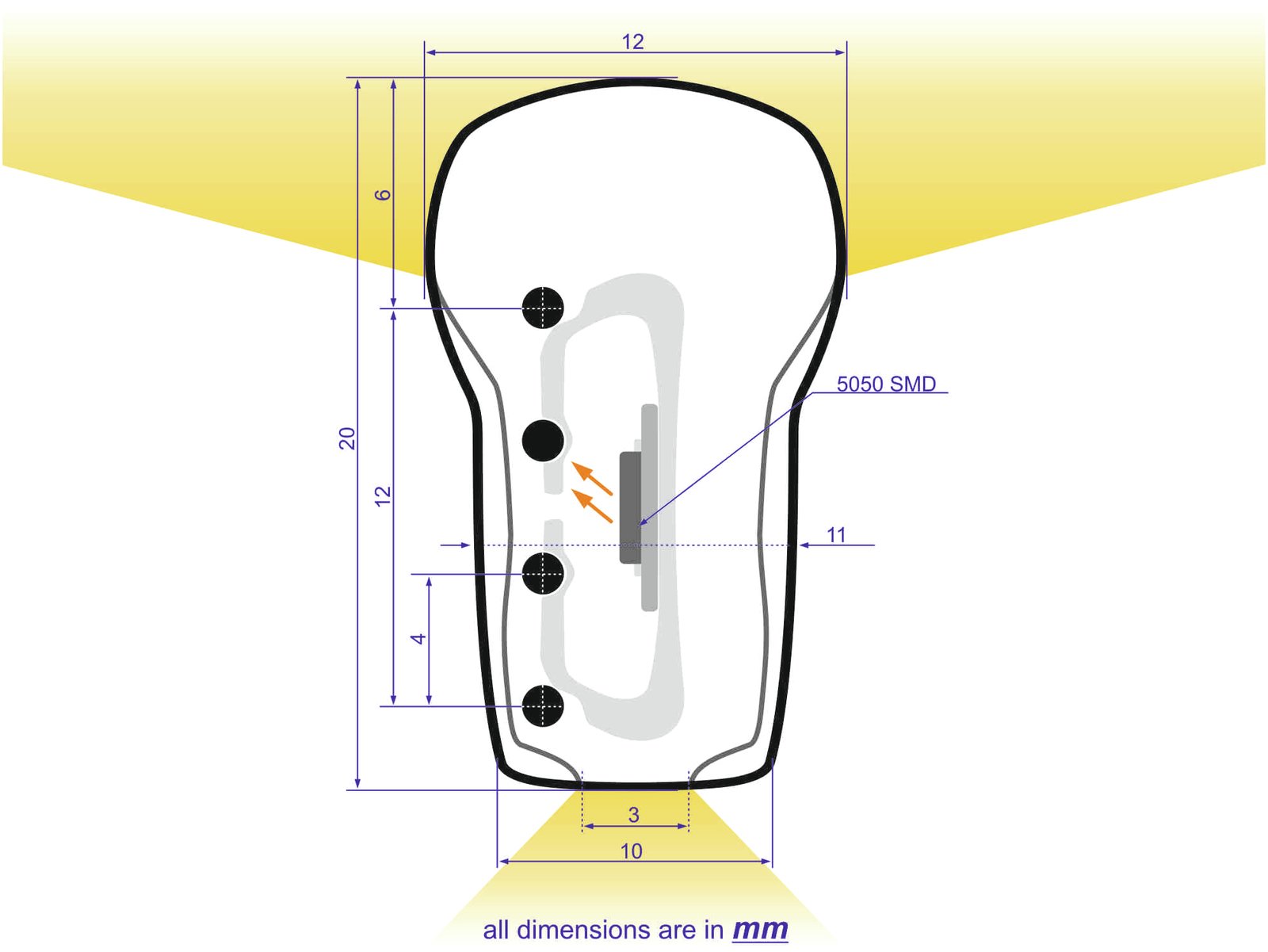 | Light emission: | Top 12 mm Bottom 3 mm |