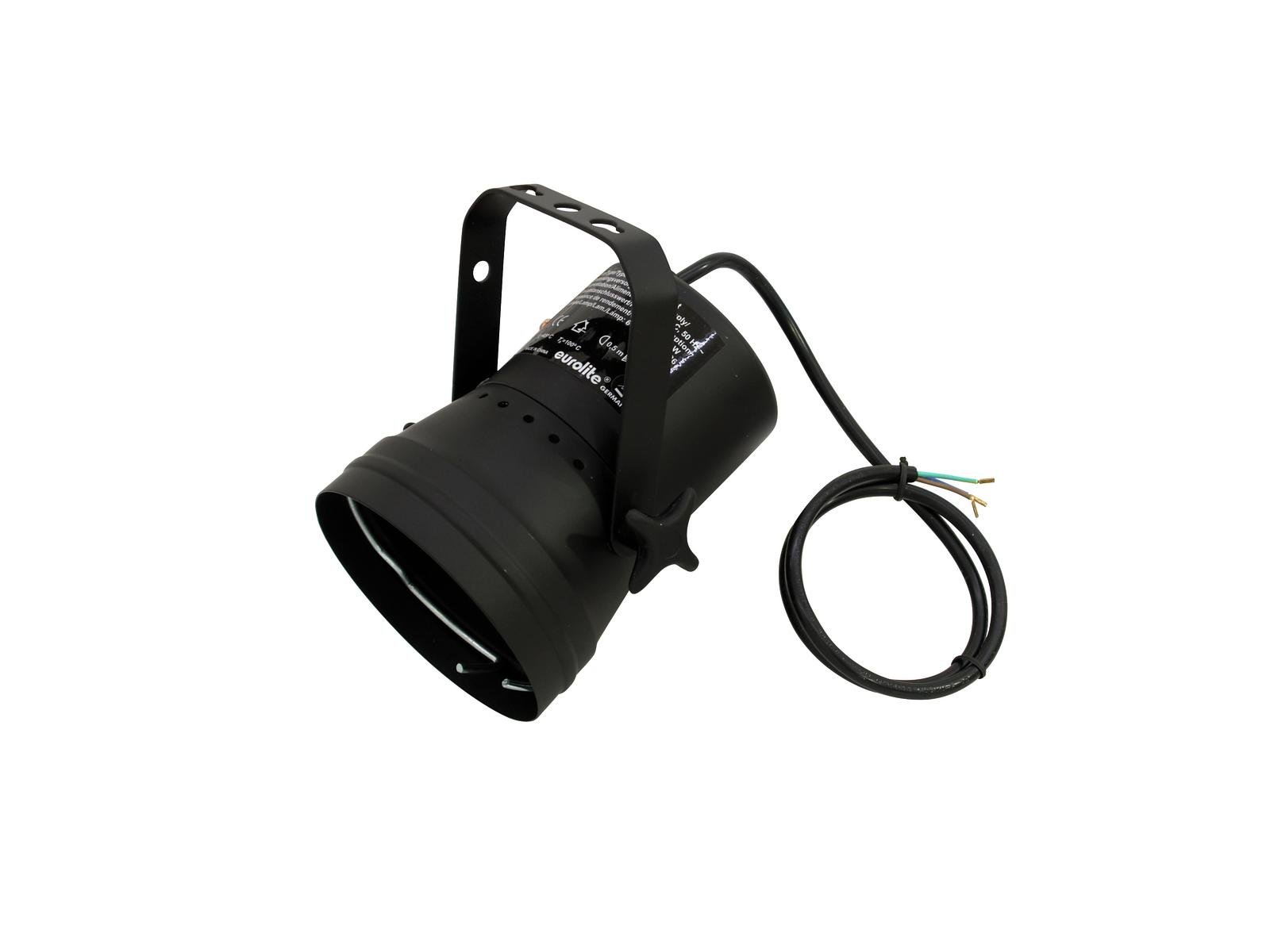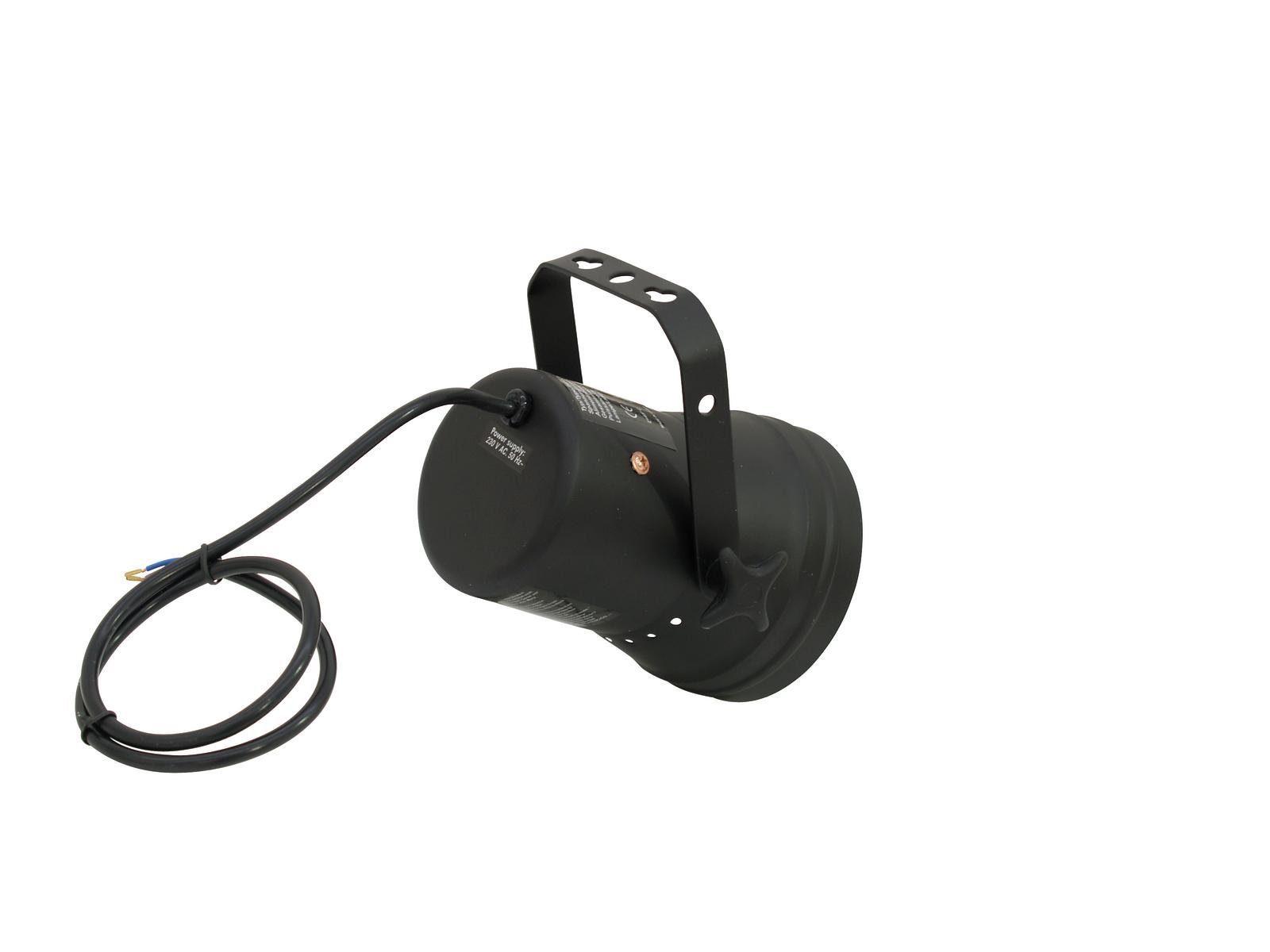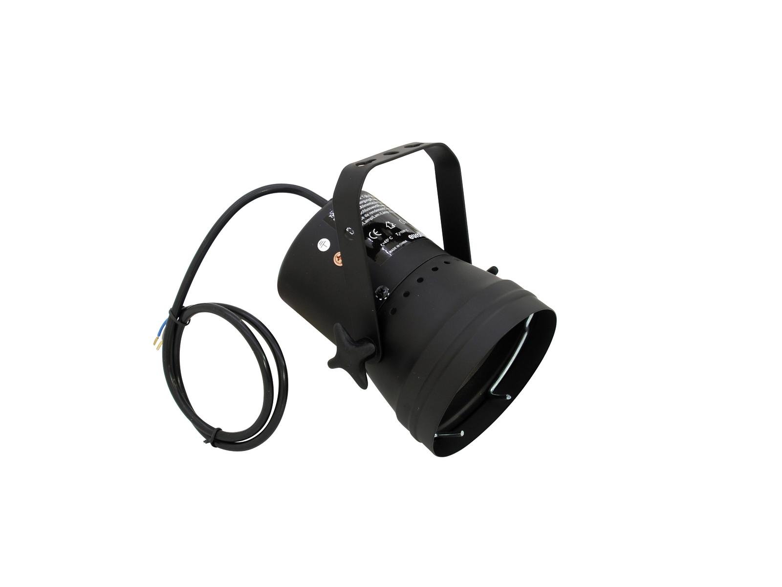 Home ML/Studio PAR spots EUROLITE T-36 Pinspot with Cable, black EUROLITE T-36 Pinspot with Cable, black SKU: 50800360 23,91 € Desconto de %. IVA incluído. Comprar Contactar Adicionar à wishlist Pinspot for PAR-36 6 V/30 W lampAt a distance of 4 m there is projected a light circle with a diameter of 30 cmSeparately capsuled transformator chamberColor caps or color foils can be attached in front of the lensFor illuminating e.g. mirror balls, entrance or counter areas or as basic illuminationInteresting price levels for purchase of larger quantitiesLow power consumptionControl via plug and playWith Mounting bracketVarious versions availablePackage contents1 x spotlight, 1 x lamp clamping ring, 1 x user manualPower supply:230 V AC, 50 HzPower consumption:Max. 30 WIP classification:IP20Protection class:Protection class ISuitable lamp:Max. 6,4 V/30 W PAR-36 G-53 STCPower connection:Fixed Supply cord with open wiresCable construction:3 x 0,75 mm² H05VV-FCable length:Approx. 0,9 mBase:WiresControl:Plug and playHousing color:Black matteAttachment system:Mounting bracketMaterial:MetalDimensions:Length: 16 cmWidth: 15,5 cmHeight: 17 cmWeight:1,00 kgMounting bracketDiameter mounting holes:3 x Ø10mm; 1 x Ø8mmMaterial:Metal, 2 mmLamp clamping ringMaterial:MetalColor:SilverLegal specificationsSpecial product:Not designed for household room illuminationIntended use:Show effect lighting Marca Eurolite Tags EUROLITET-36PinspotwithcableblackcomCabopreto Características Partilhar