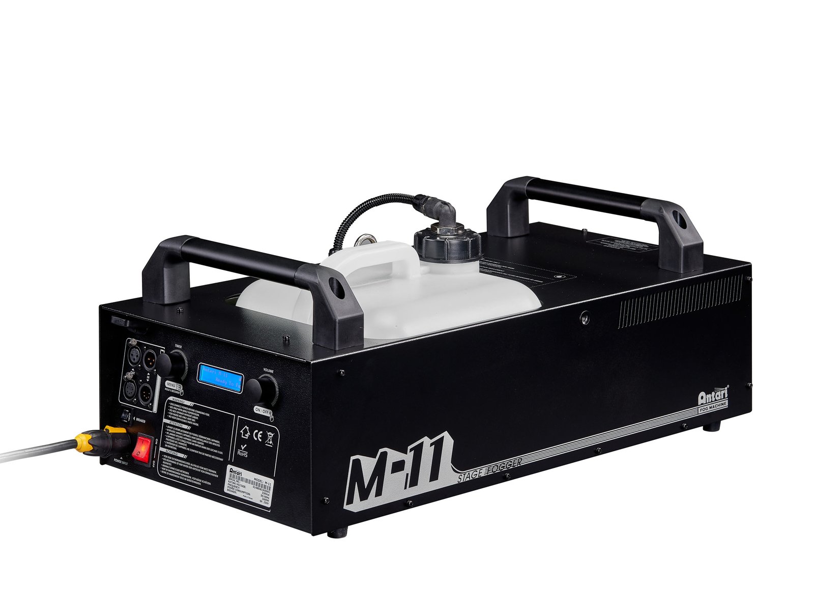 Home Smoke machines ANTARI M-11 Stage Fogger ANTARI M-11 Stage Fogger SKU: 51701912 1.532,09 € Desconto de %. IVA incluído. Comprar Contactar Adicionar à wishlist 1600 watt fogger with DMXContinuous outputRugged metal housingControl via Wireless remote control (optional); DMX; W-DMX by wireless solution upgradeable; Timer; RDMFor application areas such as: Clubs/dancing school; Stage; theater; RentalBig tank capacityWith level indicationOperates on water-based fluidRemovable tankApplication possibility: Standing; suspendedPackage contents1 x device, 1 x user manual, 1 x power cord, 1 x container, 1 x filterPower supply:230 V AC, 50 HzPower consumption:1600 WIP classification:IP20Protection class:Protection class IPower connection:Mains input via PowerCON TRUE (M) mounting version power supply cord with safety plug (provided)Warm-up time:Approx. 13 minTank capacity:10 l water-based fluid removable tankFluid consumption:Approx. 400 ml/minDMX channels:3; 1DMX input:1 x 3-pin XLR (M) mounting version1 x 5-pin XLR (M) mounting versionDMX output:1 x 3-pin XLR (F) mounting version1 x 5-pin XLR (F) mounting versionControl:Wireless remote control (optional); DMX; W-DMX by wireless solution upgradeable; Timer; RDMHousing color:BlackControls:Low fluidColor:BlackDimensions:Width: 31,98 cmDepth: 67,45 cmHeight: 28,43 cmWeight:25,10 kgNoise classification:Class 3 (clearly perceptible sounds) Marca ANTARI Tags ANTARIM-11StageFogger Partilhar