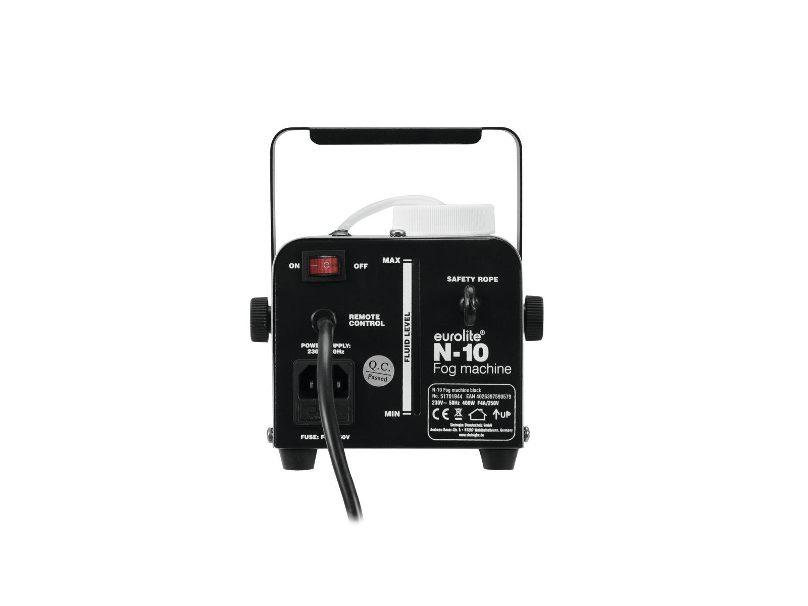 Home Smoke machines EUROLITE N-10 Fog Machine black EUROLITE N-10 Fog Machine black SKU: 51701944 47,11 € Desconto de %. IVA incluído. Comprar Contactar Adicionar à wishlist 400 watt fogger with remote controlOutput distance: Approx. 2 mControl via wired remote controlWith Mounting bracketFor application areas such as: Party room; Clubs/dancing school; small rentalWith level indicationOperates on water-based fluidApplication possibility: Standing; suspendedPackage contents1 x device, 1 x user manual, 1 x power cord, 1 x mounting bracket, 2 x knurled screw, 2 x washer, 1 x filterPower supply:230 V AC, 50 HzPower consumption:400 WIP classification:IP20Power connection:Mains input via IEC connector (M) mounting version power supply cord with safety plugWarm-up time:Approx. 5 minOutput volume:Approx. 14 m³/minOutput distance:Approx. 2 mTank capacity:0,3 l water-based fluid fixed tankFluid consumption:Approx. 21 ml/minControl:Wired remote controlHousing color:BlackAttachment system:Mounting bracketHeater:400 WControls:OverheatColor:BlackDimensions:Width: 14,5 cmDepth: 26,5 cmHeight: 17 cmWeight:1,87 kgNoise classification:Class 3 (clearly perceptible sounds) Marca Eurolite Tags EUROLITEN-10Fogmachineblack Características Partilhar