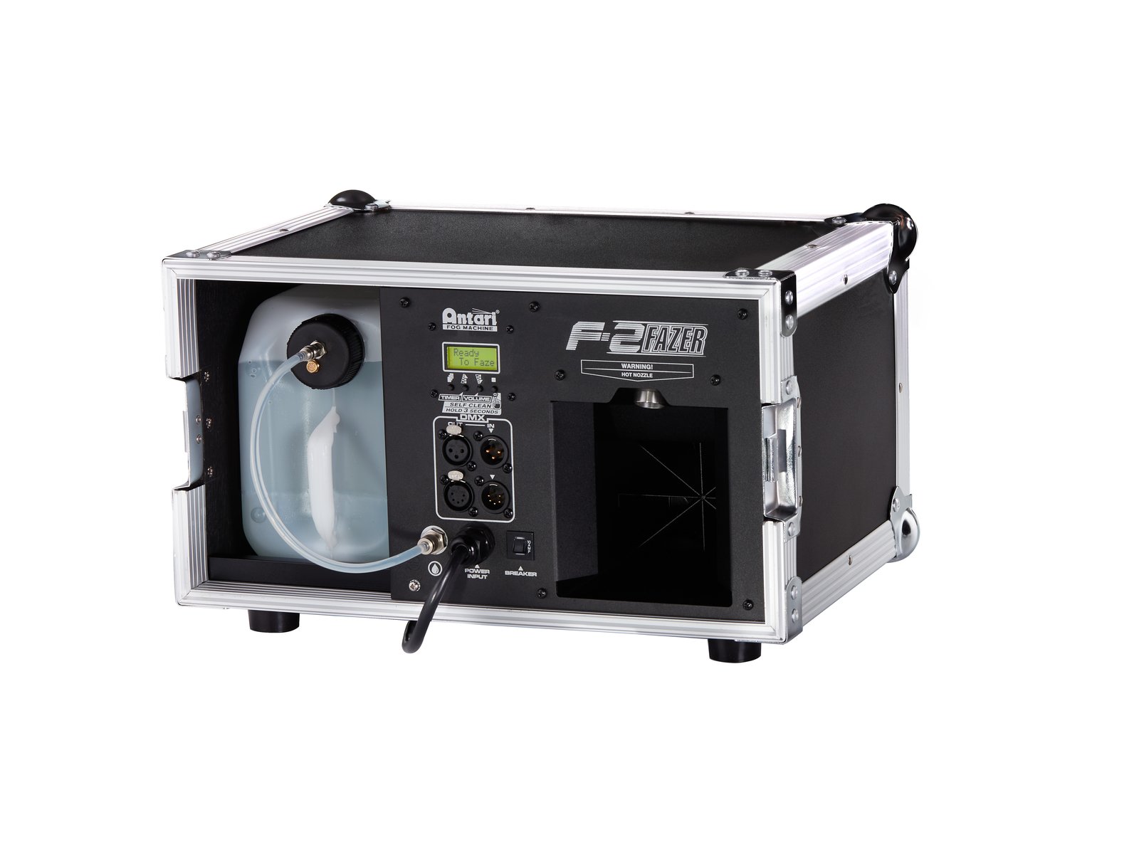 The Antari F-2 is a compact fazer with 1350 watts output power in a stackable flight case. The F-2 is convenient to transport and ready for use within 90 seconds. The control board is equipped with an LC display for easy programming of timer and DMX functions.