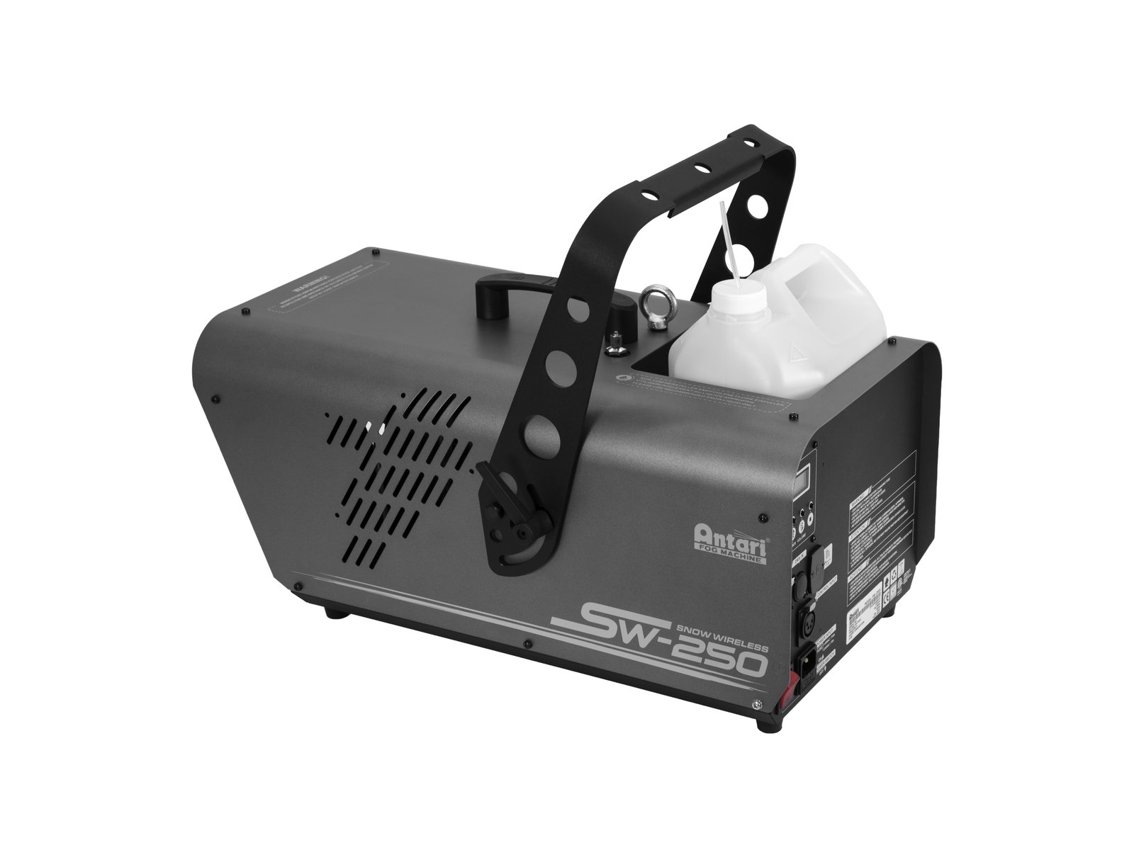 Home Snow machines - maquinas de neve ANTARI SW-250X Snow Machine ANTARI SW-250X Snow Machine SKU: 51706270 759,84 € Desconto de %. IVA incluído. Comprar Contactar Adicionar à wishlist Compact snow machine with DMX interface and control moduleSnow machine with high output for a real blizzard effectLess expensive version without wireless control systemImproved version with about 250% more snow output than predecessor modelRugged metal housing with handle, mounting bracket and safety eyeletPrecisely adjustable timer with interval, duration and output volumeContinuous output with adjustable snow volume or manual activation with maximum snow volumeControl via stand-alone; DMX; TimerBig tank capacityRemovable tankFor application areas such as: Wedding/gala/events; theater; Rental; Clubs/dancing schoolApplication possibility: Standing; suspendedPackage contents1 x device, 1 x user manual, 1 x power cord, 1 x mounting bracket, 2 x knurled screw, 2 x screw, 4 x washer, 1 x container, 1 x tube, 1 x filterPower supply:230 V AC, 50 HzPower consumption:750 WPower connection:Mains input via IEC connector (M) mounting version power supply cord with safety plug (provided)Tank capacity:5,0 l removable tankFluid consumption:Approx. 150 ml/minDMX input:1 x 5-pin XLR (M) mounting versionDMX output:1 x 5-pin XLR (F) mounting versionControl:Stand-alone; DMX; TimerHousing color:GreyDimensions:Width: 27,6 cmDepth: 55,4 cmHeight: 22,8 cmWeight:11,78 kgNoise classification:Class 2 (slight noise) Marca ANTARI Tags ANTARISW-250XSnowmachine Características Partilhar