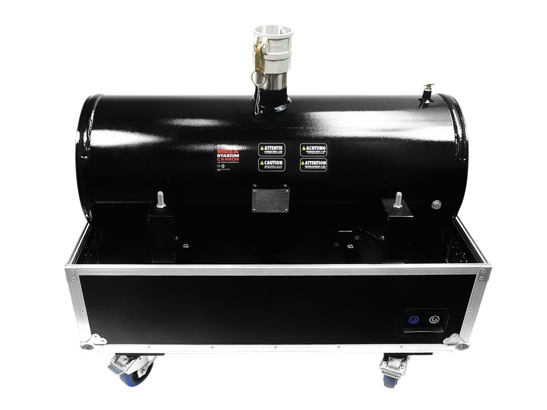 Home Confetti & streamer TCM FX Stadium Cannon 2 TCM FX Stadium Cannon 2 SKU: 51708070 4.782,24 € Desconto de %. IVA incluído. O produto encontra-se sem stock. Adicionar à wishlist Large confetti cannon for electric triggering, compressor neededThe electric shooter can be used for confetti or streamer cannonsThe shooting angle can be adjusted steplesslyActivated by a 230V power sourceMade in EuropeFor application areas such as: StagePower supply:230 V AC, 50 HzPower consumption:100 WPower connection:Mains input via PowerCON (blue), mounting versionPower output:1 x PowerCON (gray), mounting versionHousing color:BlackDimensions:Width: 89 cmDepth: 78 cmHeight: 82 cmWeight:90,00 kg Marca TCM FX Tags TCMFXStadiumCannon2 Características Partilhar
