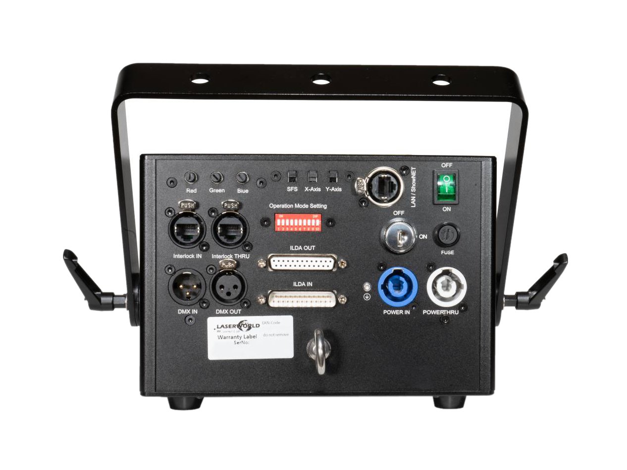 Home Laser LASERWORLD DS-2000RGB MK4 LASERWORLD DS-2000RGB MK4 SKU: 51743287 1.308,92 € Desconto de %. IVA incluído. Comprar Contactar Adicionar à wishlist Diode showlaser with ShowNET network interface and free softwareIntegrated show programsControl via ILDA; DMX; ArtNet; Master/slave function; stand-aloneFor application areas such as: Clubs/dancing school; Stage; RentalApplication possibility: SuspendedFor further information about this product, please refer to the Data Sheet under "Downloads"Package contents1 x laser, 1 x user manual, 1 x power cord, 2 x key, 1 x interlock, 1 x bag, 1 x network cablePower supply:100-240 V AC, 50/60 HzPower consumption:45 WIP classification:IP4XPower connection:Mains input via P-Con (blue), mounting version power supply cord with safety plug (provided)Power output:1 x PowerCON (gray)Laser class:4Laser color:R/G/BLaser module:Red (R) 500 mW 638nmGreen (G) 500 mW 520nmBlue (B) 1400 mW 450nmControl:ILDA; DMX; ArtNet; Master/slave function; stand-aloneHousing color:BlackDimensions:Length: 21 cmWidth: 17 cmHeight: 14,5 cmWeight:5,20 kg Marca LASERWORLD Tags LASERWORLDDS-2000RGBMK4 Características Partilhar
