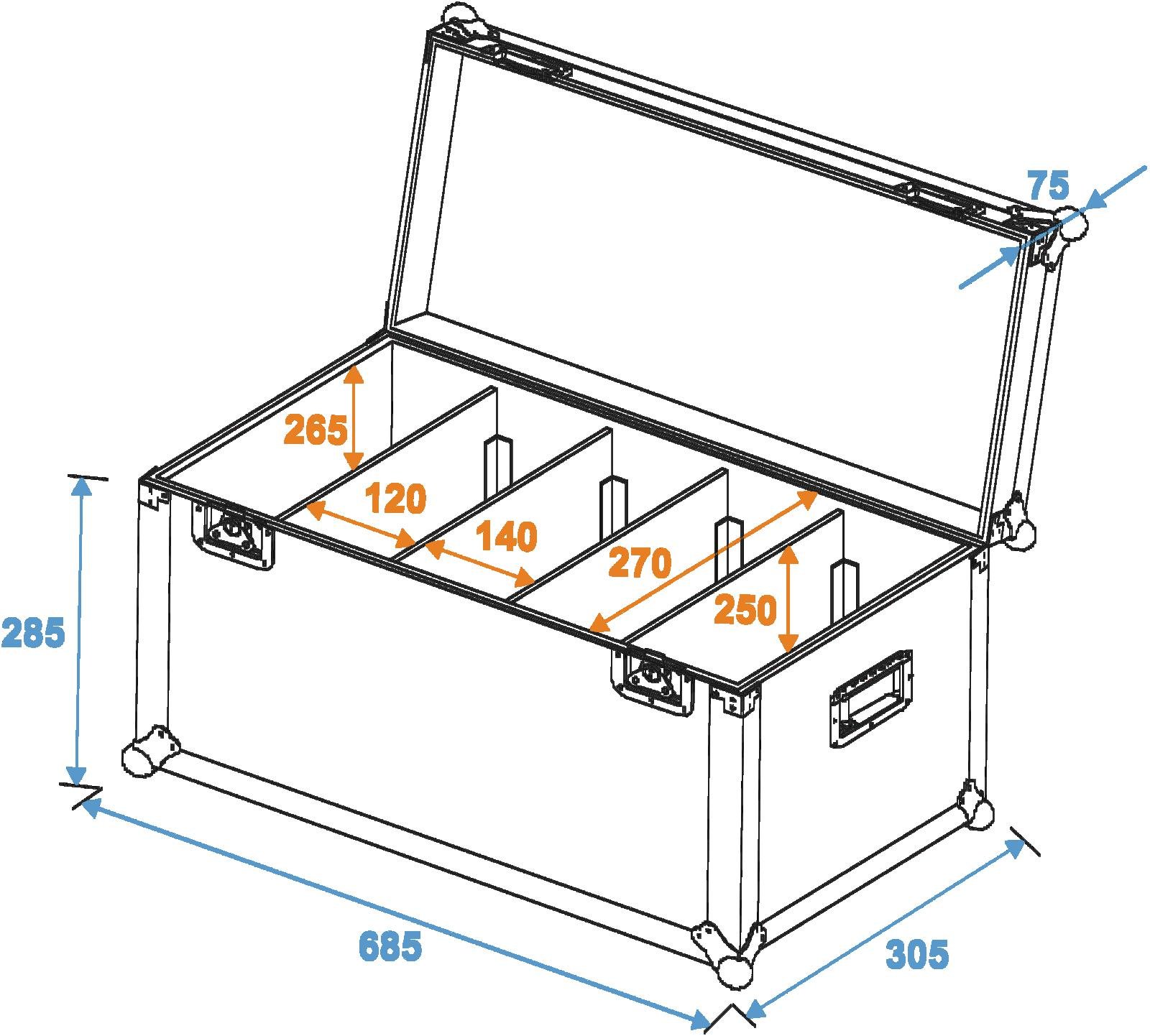 Home Flightcases ROADINGER Flightcase 4x PRO Slim Size M ROADINGER Flightcase 4x PRO Slim Size M SKU: 51836702 317,04 € Desconto de %. IVA incluído. Comprar Contactar Adicionar à wishlist PRO flightcase for 4 x PRO Slim spotlightWith accessory compartmentWith 4 Device compartmentsHigh-quality workmanship with birch multiplex 7 mm, black, laminatedInterior with foam paddingAluminum profile frames 30mm with rounded edges2 hinged, chromium plated case handles2 chrome tip-over locks2 high-quality butterfly locksBranded hardwareMade in EuropeFor further information about this product, please refer to the Data Sheet under "Downloads"Maximum load:50 kgAluminum profile frames:30 mmCase handle:2 pc/pcsStop hinge:2 pc/pcsLock:Butterfly lock: 2 pc/pcsUse of brands:Branded hardwareMaterial:Birch multiplex, 7 mmColor:Black, laminated; dark brown, laminatedInside dimensions:27 cm x 2,65 mMiddle compartment:14 cm x 27 cm x 25 cmCompartment dimensions:12 cm x 27 cm x 25 cmDimensions:Width: 68,5 cmDepth: 30,5 cmHeight: 36 cmWeight:9,20 kg Marca Roadinger Tags ROADINGERFlightcase4xPROSlimSize(M)Tamanho Características Partilhar